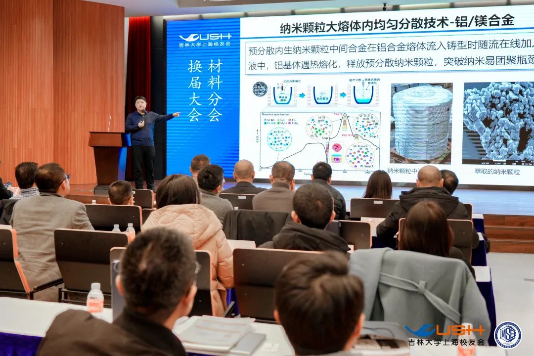 材料学院教授、博士生导师邱丰分享了材料学科前言发展动态,他以《微量纳米强化技术应用于高性能轻合金及热成型模具材料开发和产业应用》主题,重点介绍了新材料行业发展动态和材料学院最新的科研成果。
