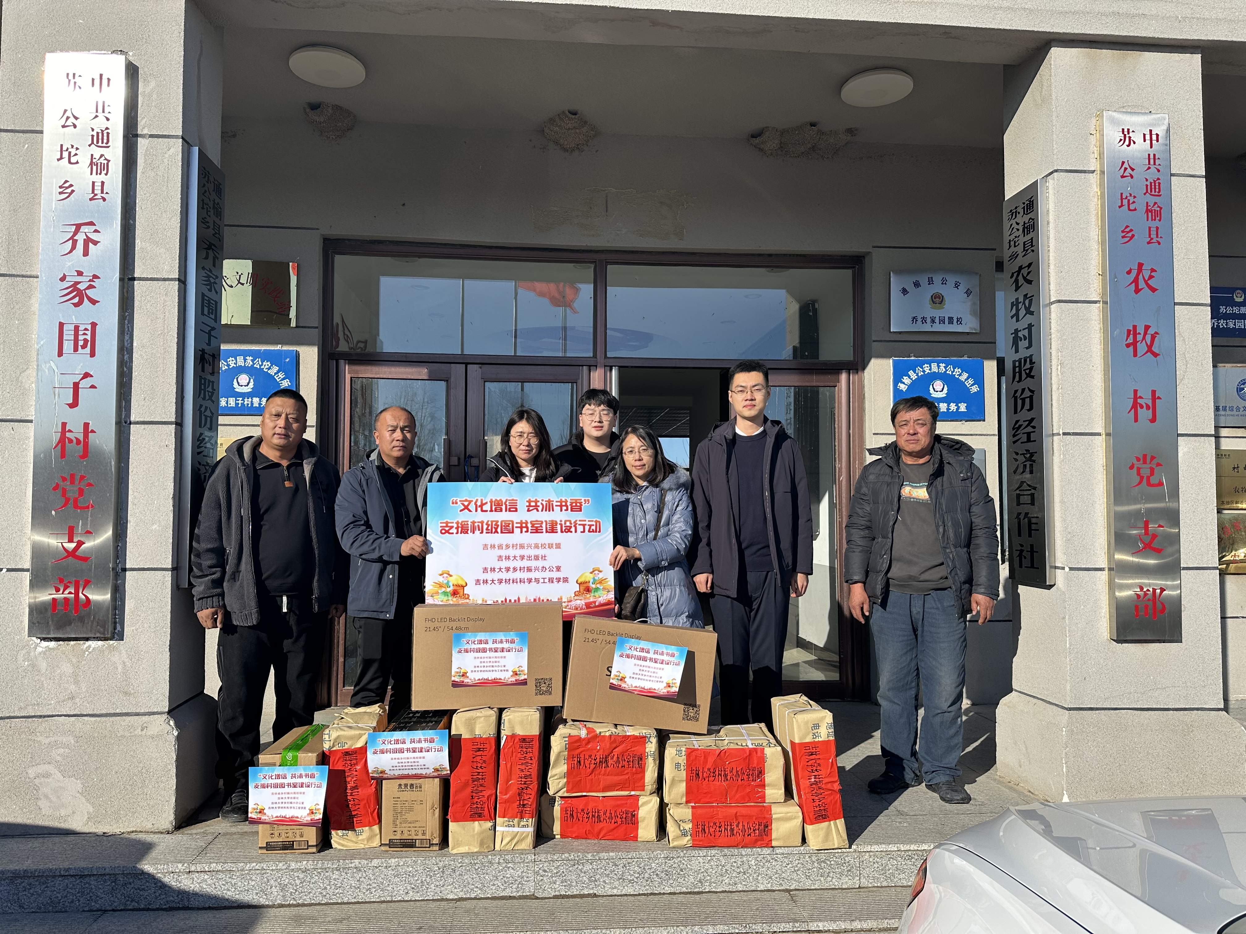 出版社、乡村振兴办公室在乔家围子村党群服务中心举行“文化增信 共沐书香”支援乡村图书捐赠仪式,极大地丰富了乡村村民文化生活。苏公坨乡党委书记李宝峰、乔家围子村党支部书记王玉民出席了捐赠仪式。