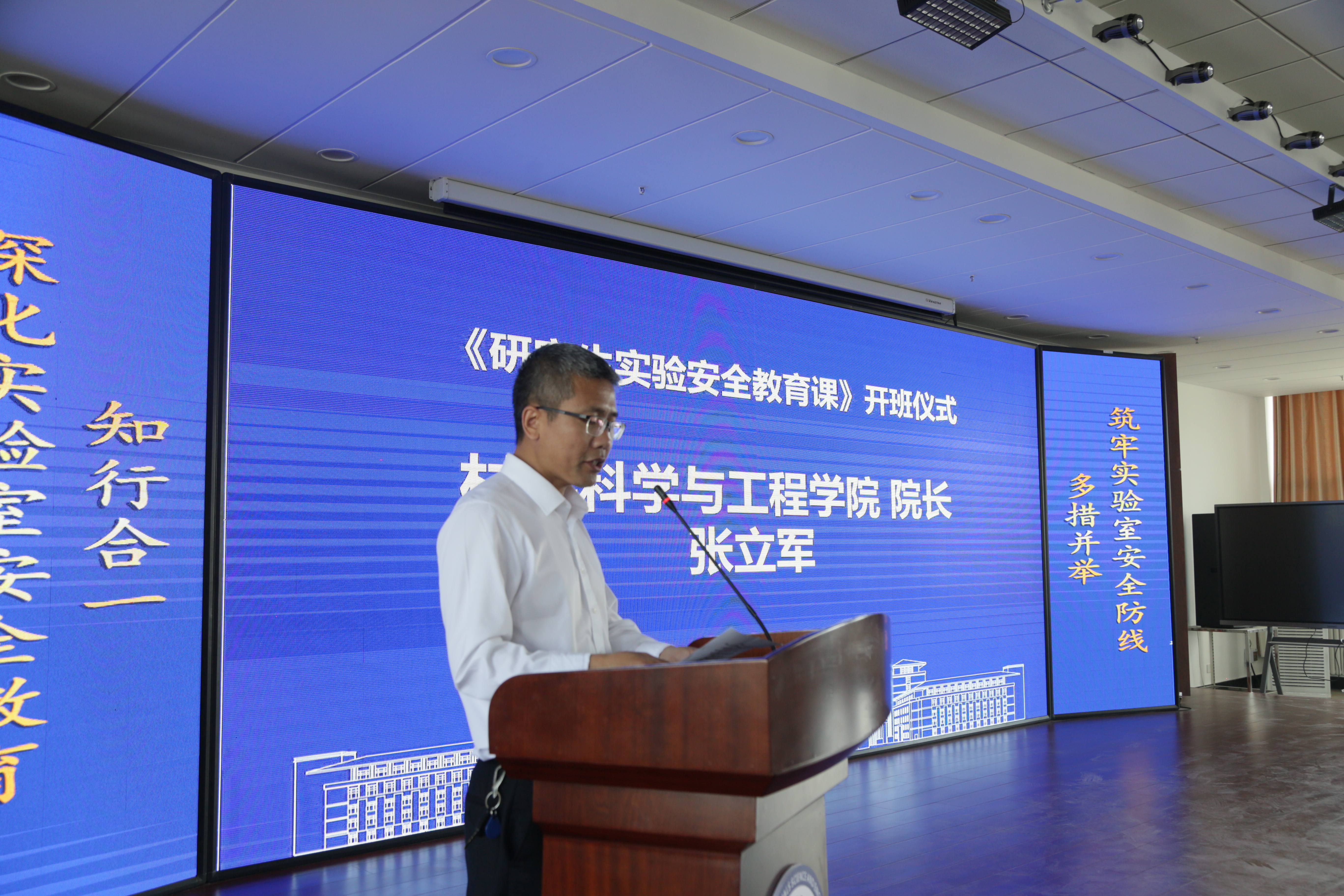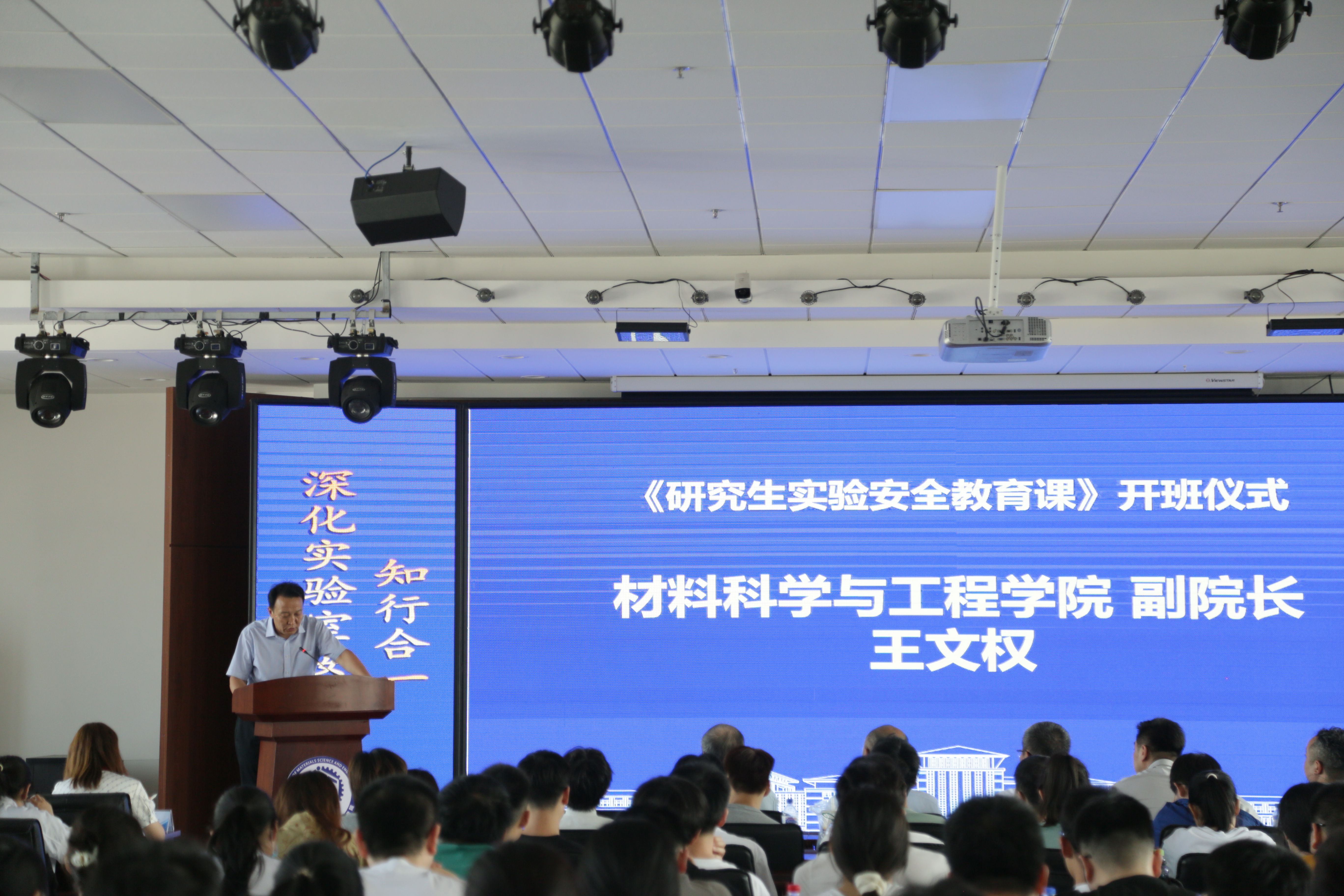 实验室管理处的大力支持下,面向学院研究生,共同开设了《研究生实验安全教育课》,并于2023年6月15日首次开课前举行了开班仪式。
