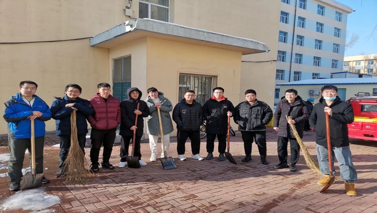 以雪为令,于11月13日中午组织22级研究生进行扫雪活动。同学们以高涨的热情投入此次活动中,以“包片划区”的形式做好分工,主动、高效地承担起扫雪清路的工作。大家团结协作,不惧寒冷,有序清理路面积雪。
