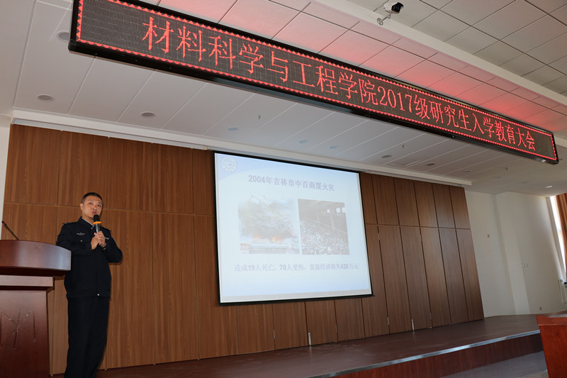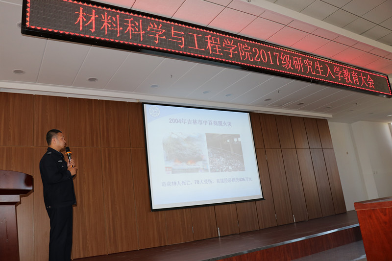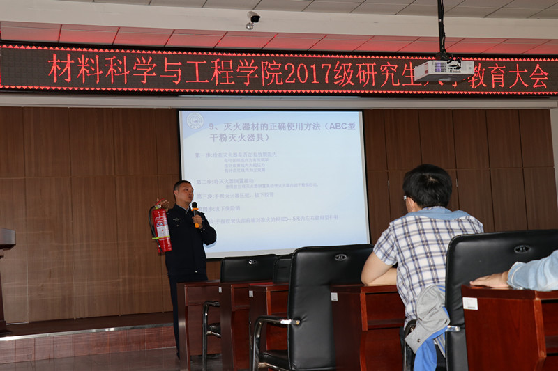 于2017年8月31日上午8:30在逸夫机械材料馆八楼报告厅开展了2017级研究生新生安全教育的专题讲座,本次讲座由东区保卫办公室消防科科长韩旭和东区综合办治安科科长于珺分别对消防安全、综合治安两个较为突出的问题进行细致讲解。