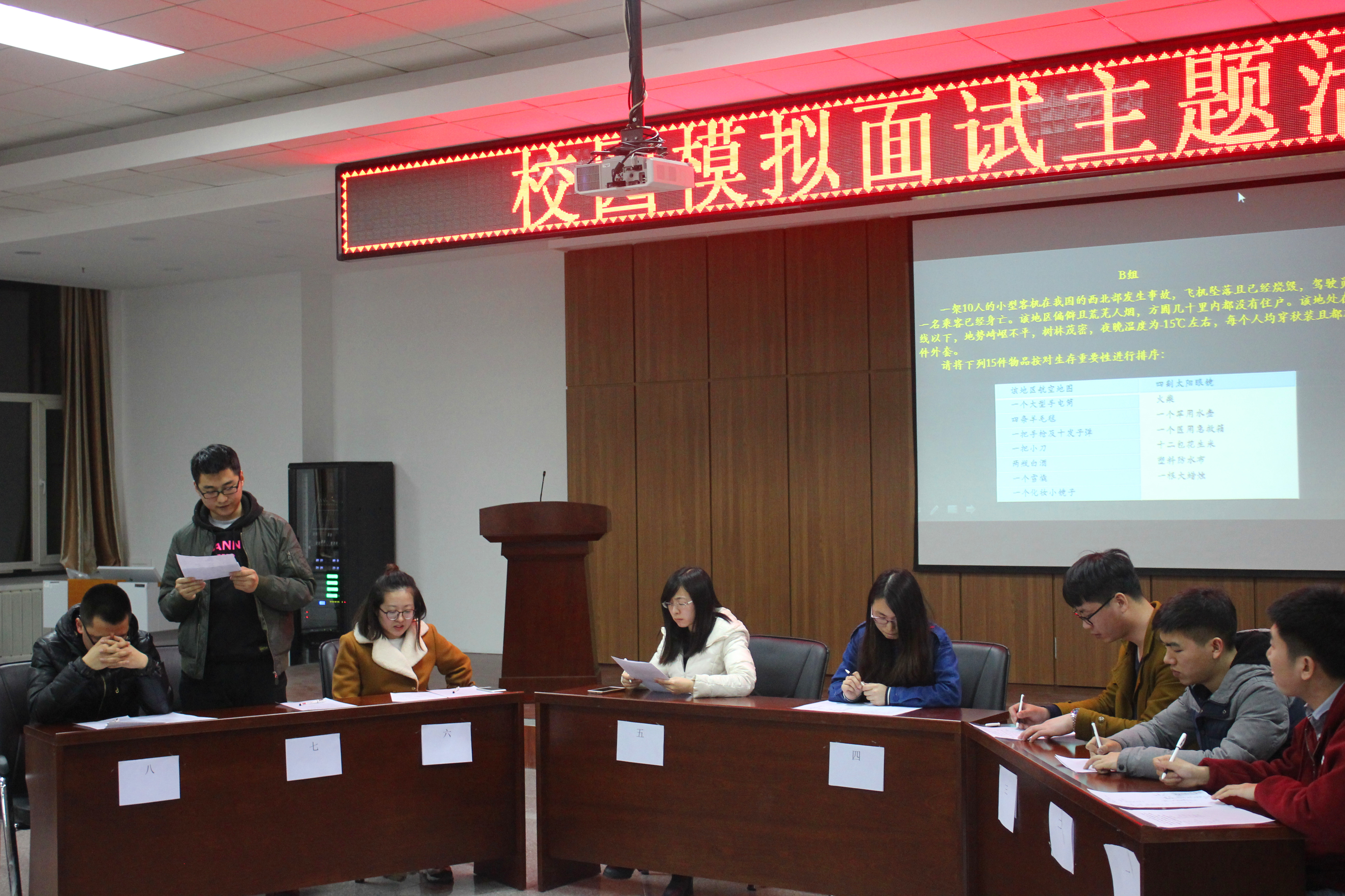 为了提高同学们在未来求职道路上的竞争力,2017年3月19日晚,由性吧 研究生学团委学术实践部主办的校园模拟面试主题活动在材料馆8楼会议厅顺利举行。