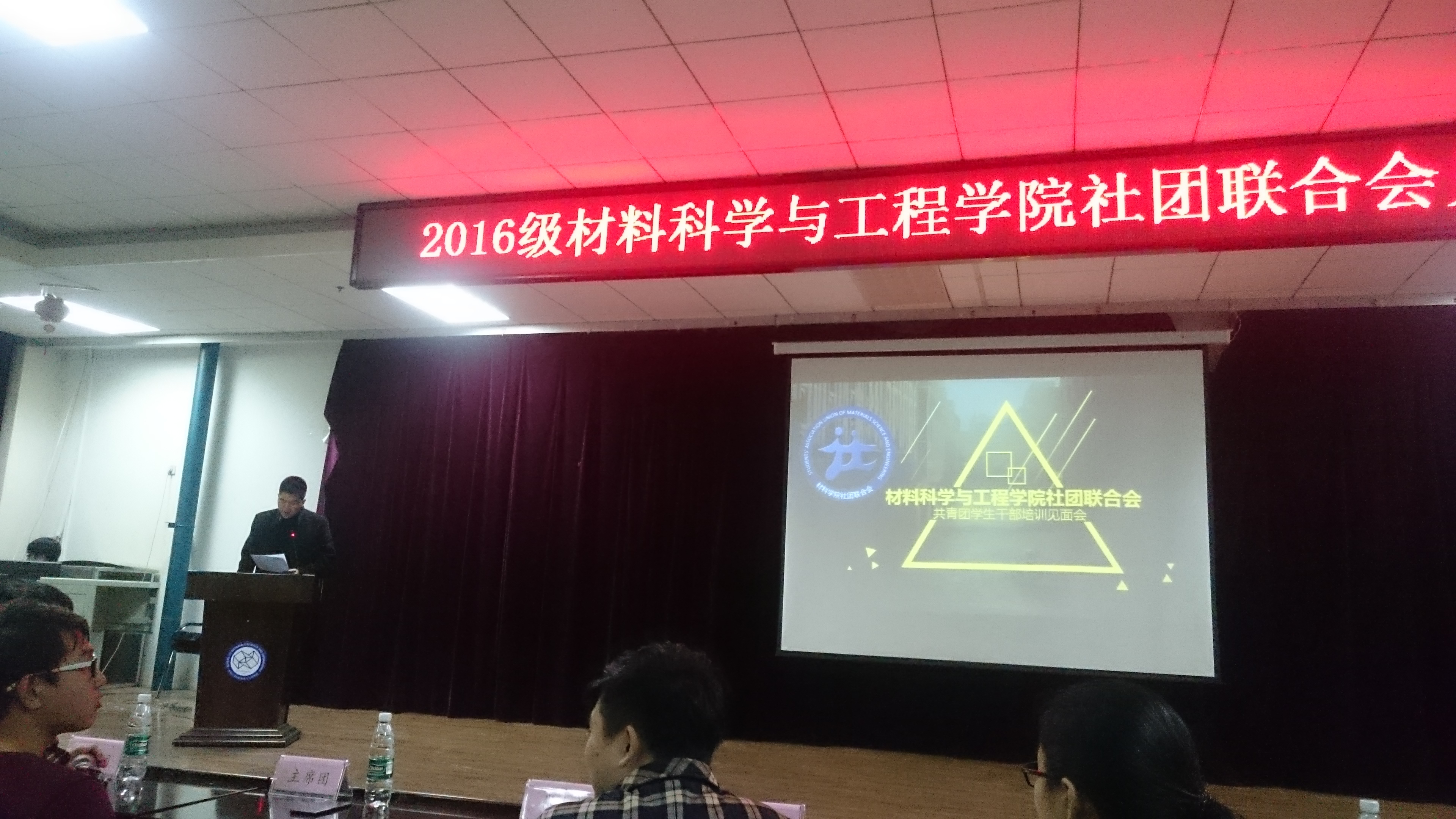 社团联合会在逸夫机械材料馆八楼报告厅召开预备学生干部见面会。团委书记兼2013级辅导员张本龙出席本次活动。