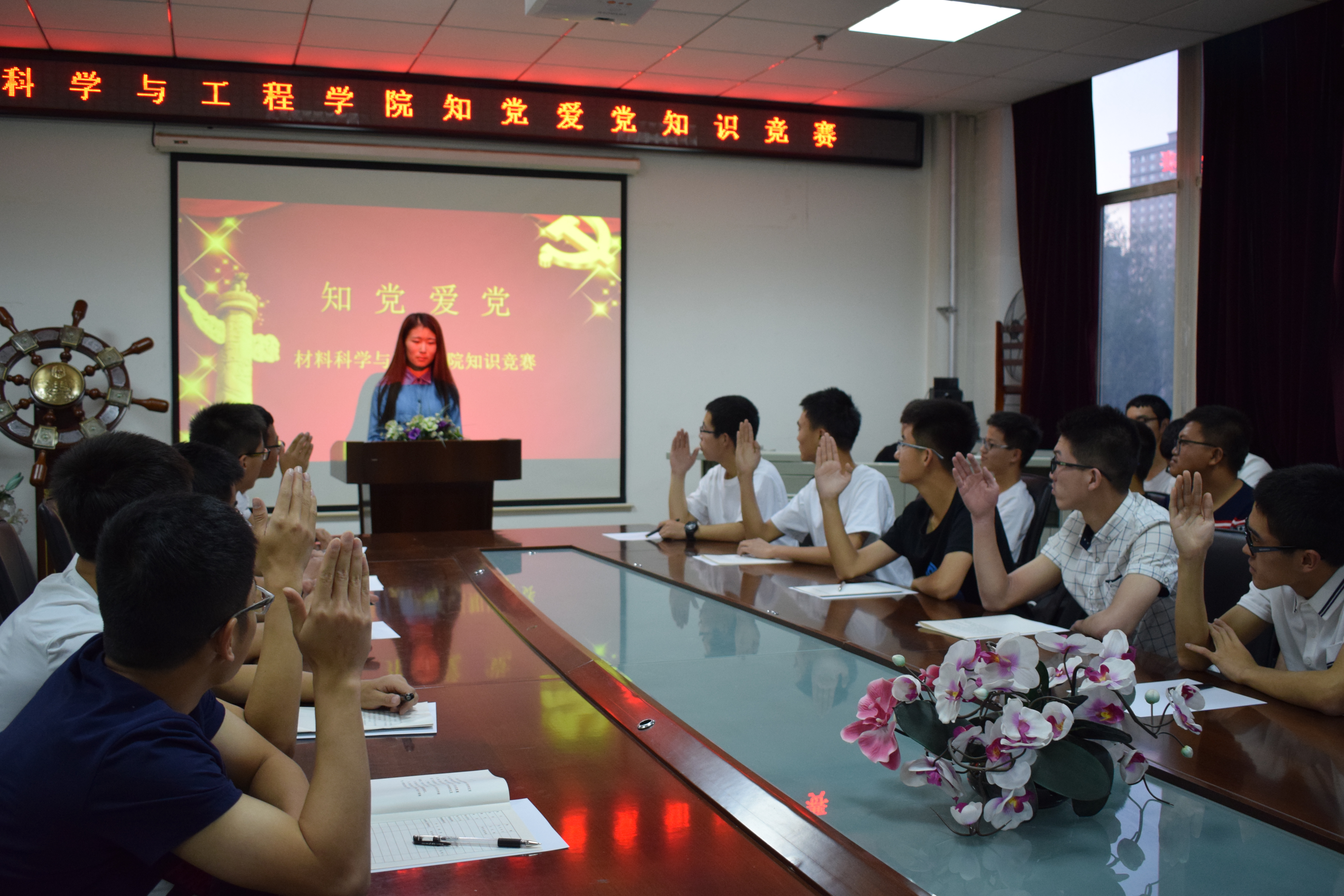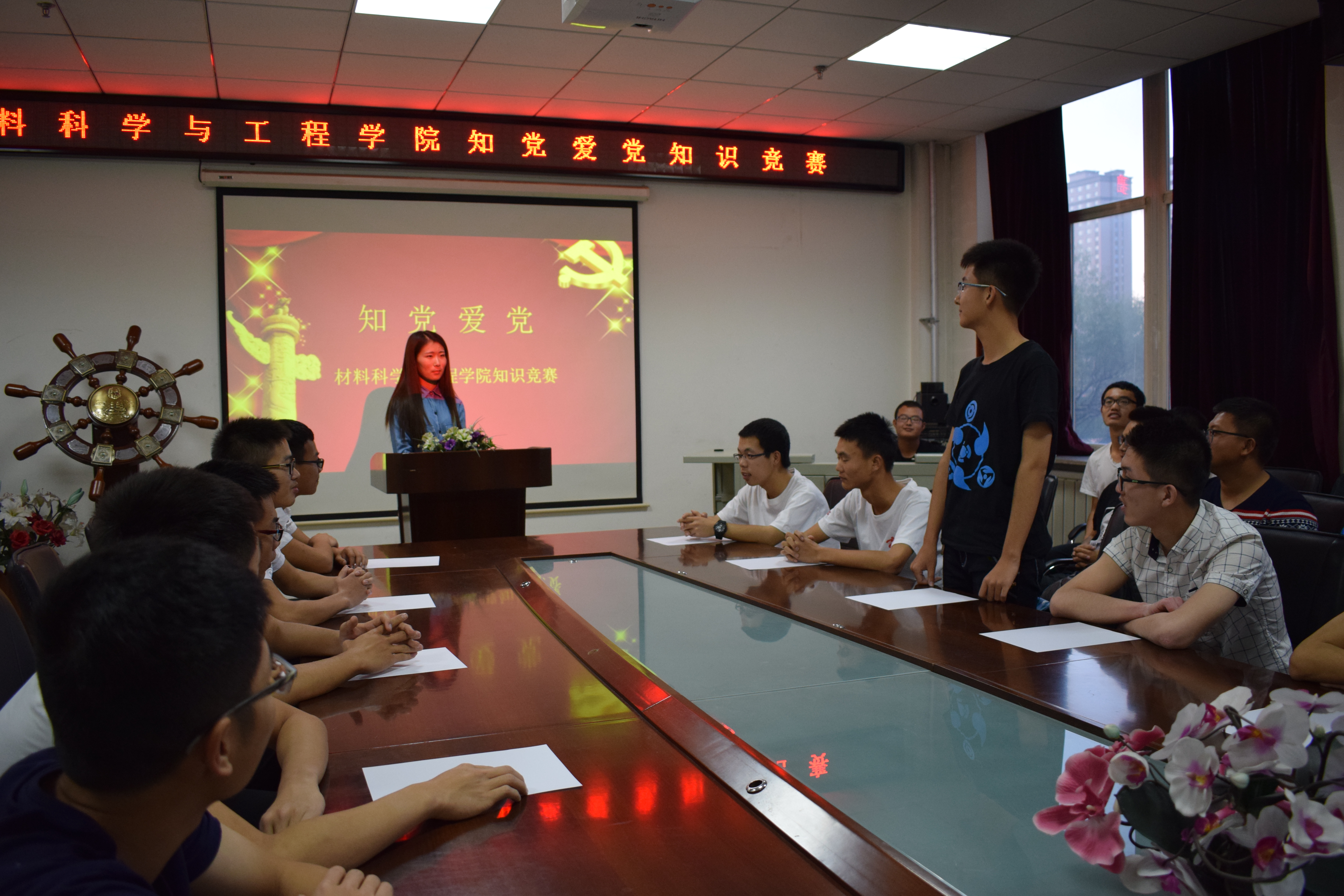 校园文化的发展,加强学生的思想道德建设,提高学生的综合素质,培养广大学生的思维创新能力,展现当代大学生风华正茂的精神面貌,材料学院于6月3日开展“知党爱党,共圆美好材子梦”为主题的知识竞赛活动。经过三天初赛、复赛的筹备与比拼,于6月7日在逸夫机械材料馆410室举办了决赛并对优秀的同学进行了表彰。材料学院团委书记兼2013级辅导员张本龙出席此次活动。