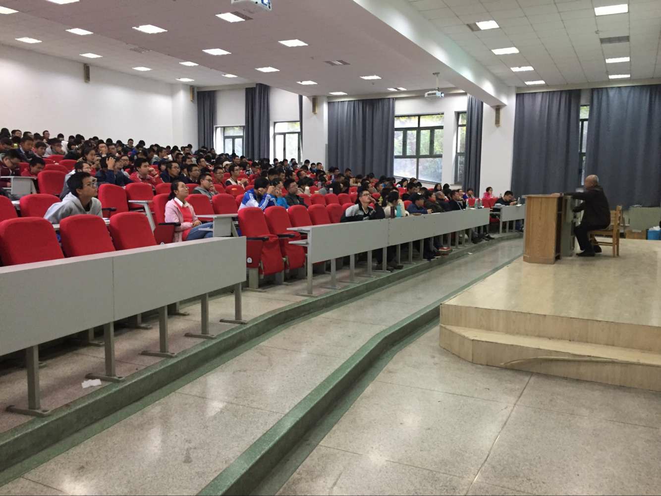 讲座如期举行,同学们在严老师的组织下有序的进入会场。任纯祥教授围绕南海海域的基本情况、中国对南海诸岛拥有国家主权和海洋权益、周边国家侵占和控制我国南沙岛礁的情况、南海主权争端加剧原因、中国对南海坚持维稳维权并举的方针、菲律宾提起仲裁是背信弃义的充满谎言的非法行为、南海仲裁案是一场披着法律外衣的政治闹剧,这七个问题展开精彩论述。赢得同学们热烈的掌声,会议中始终保持着良好的会场秩序。经过将近两个小时的讲话,时政讲座在老师和同学们的配合下圆满结束。