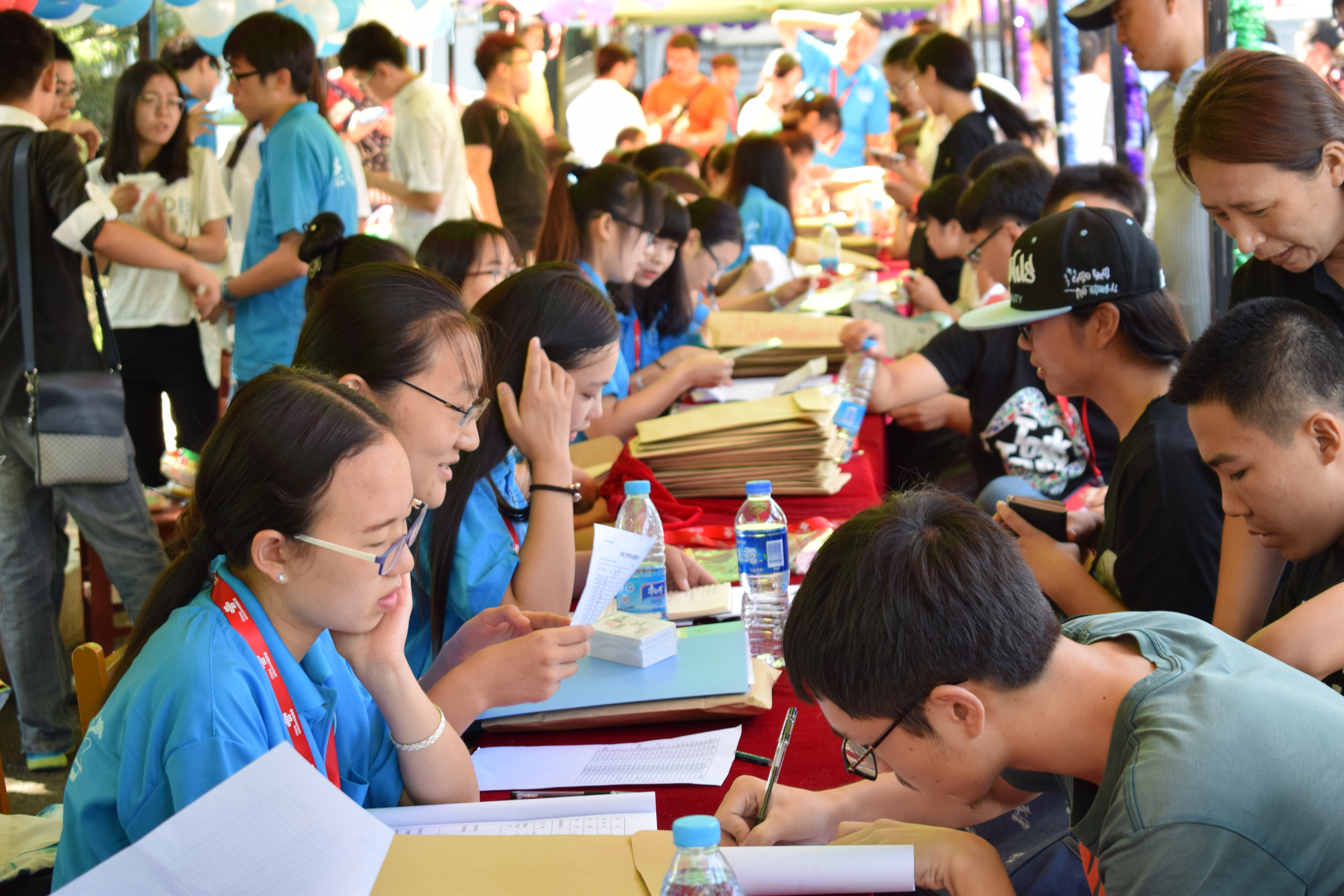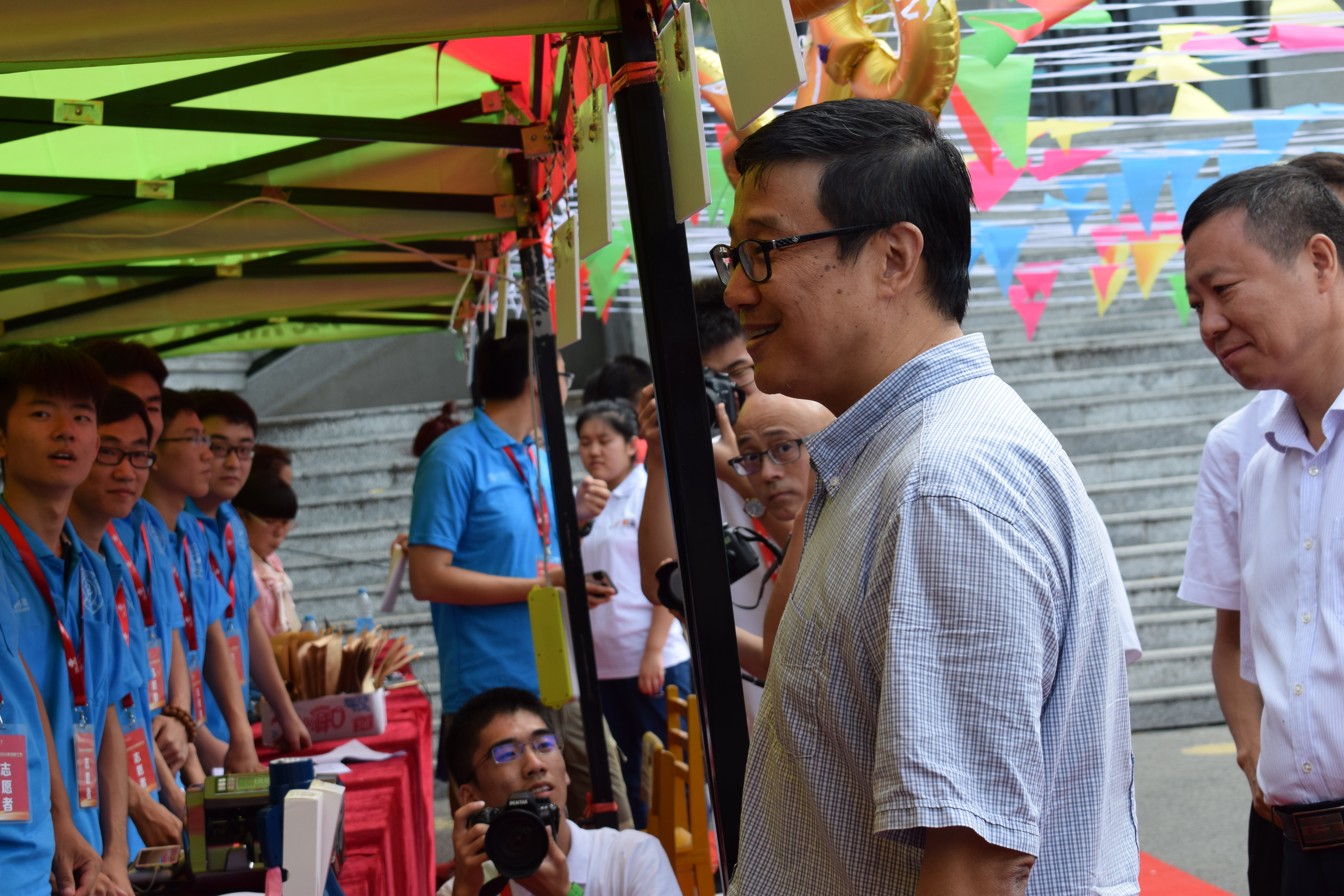19日晨曦初照,学团委成员的身影出现在第二教学楼门前,他们有序地从第二教学楼搬运出桌椅,并在材料学院迎新现场摆放整齐,之后他们搭架帐篷,铺展台布,摆放迎新报道时所需要的各类资料文件。不久,身着统一服装的工作人员,进入了工作区,开始了迎新工作,在迎新工作中,前台女生认真娴熟地指导他们填写入学报到资料,为他们整理档案袋,老师们为新生和家长解答疑问,其他工作人员帮助新生搬行李、引路、发钥匙,介绍学校、宿舍及学校周边情况,并且在当天下午,学校领导视察了性吧