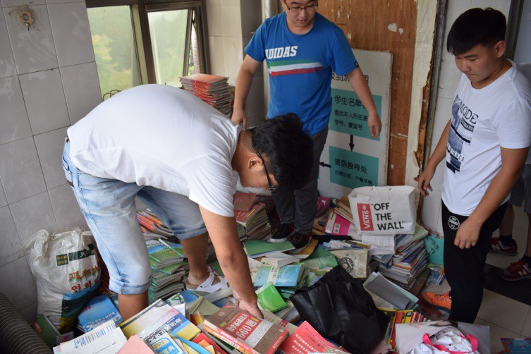 首先,杨浩带领大家对收集来的书籍进行检查,确保每本书都完整,不会出现缺页短页。随后,阳爱工作人员将这些完好的书籍分类整理,并贴上二维码。本次活动于8月19号正式开展,到时,每一位新生只要参与扫码,就能够获得免费书籍。