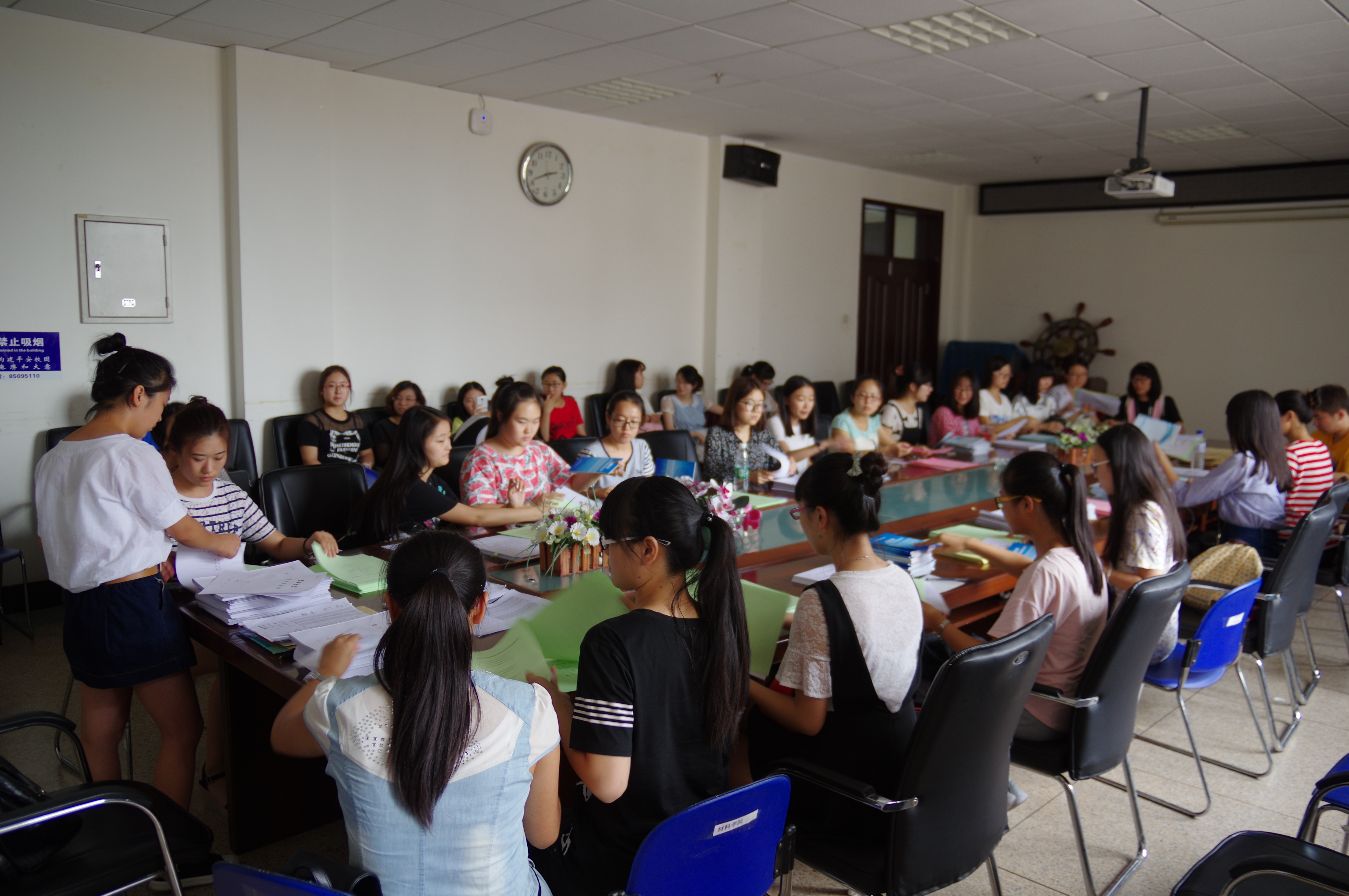学子热情团结的精神风貌,于迎新工作前夕,材料学院在逸夫机械材料馆4楼410会议室召开迎新工作前台培训大会。