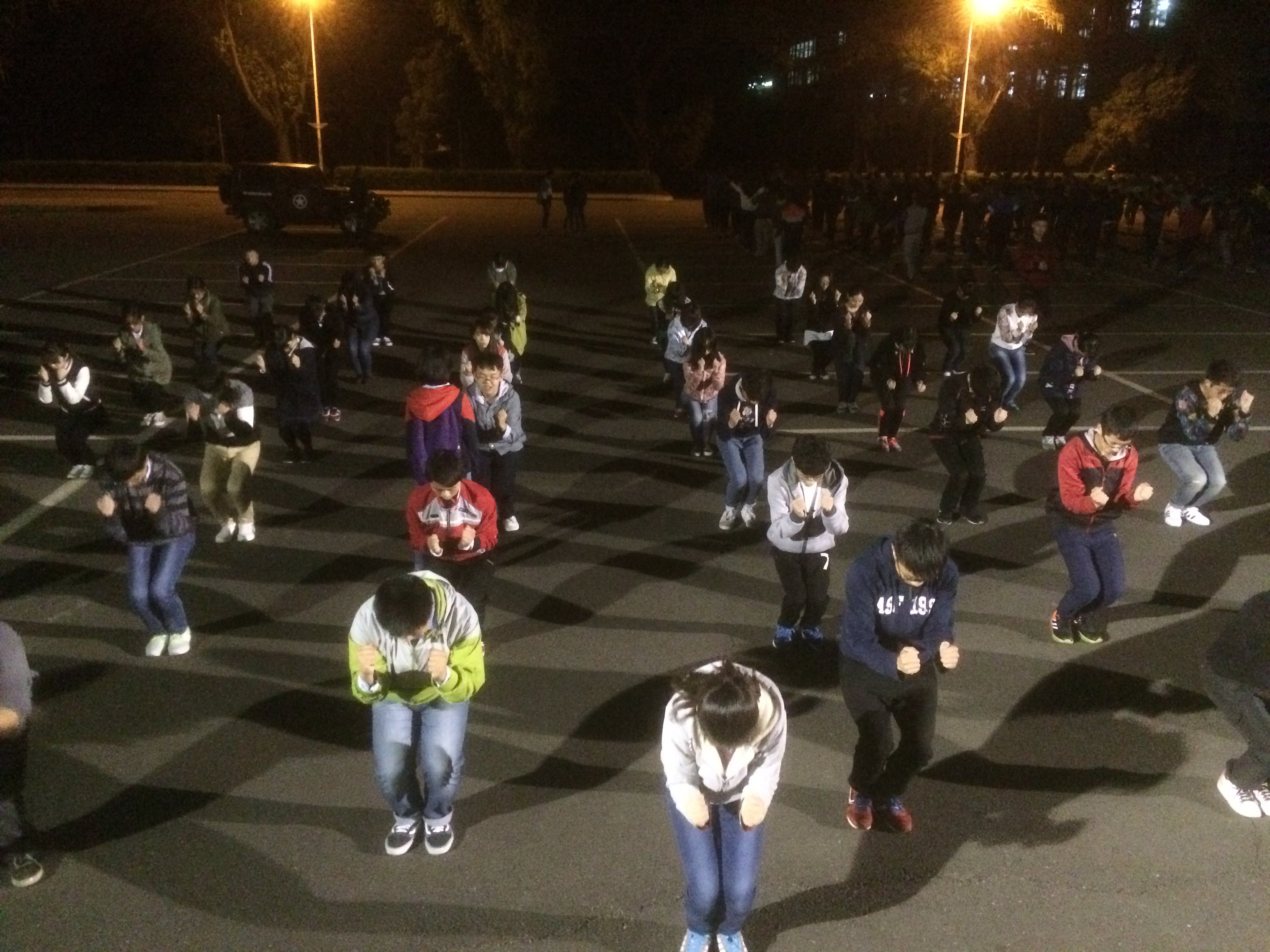 南岭校区文化活动中心训练第九套广播体操,并成功晋级决赛。