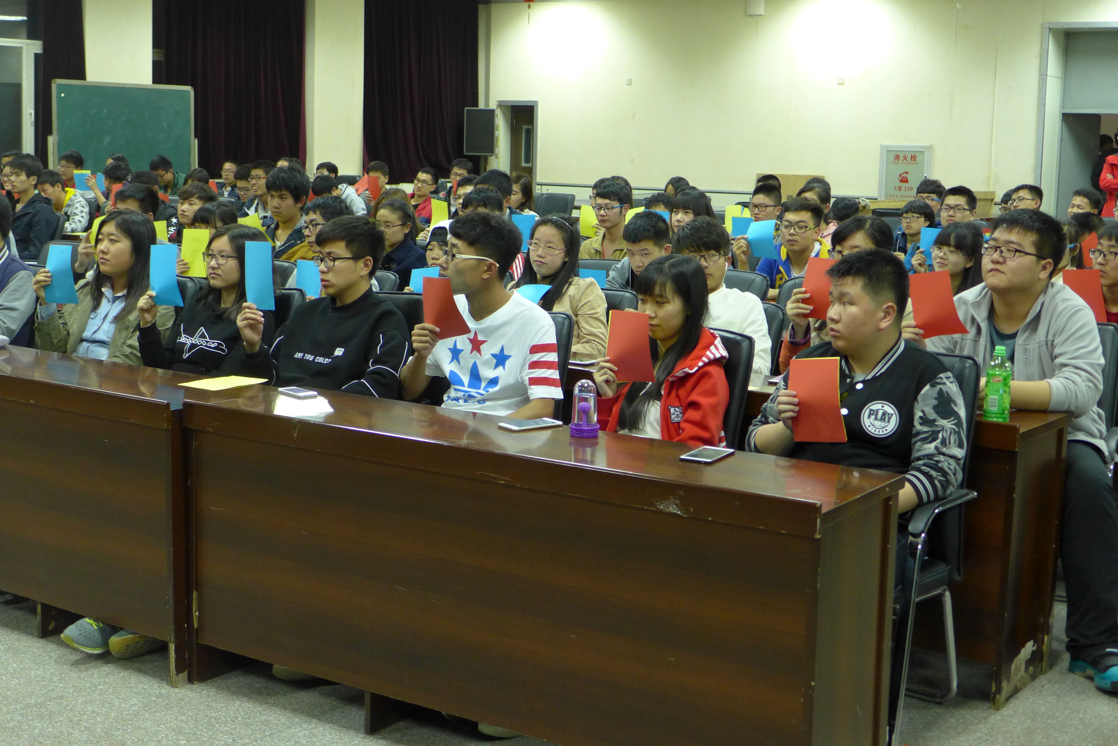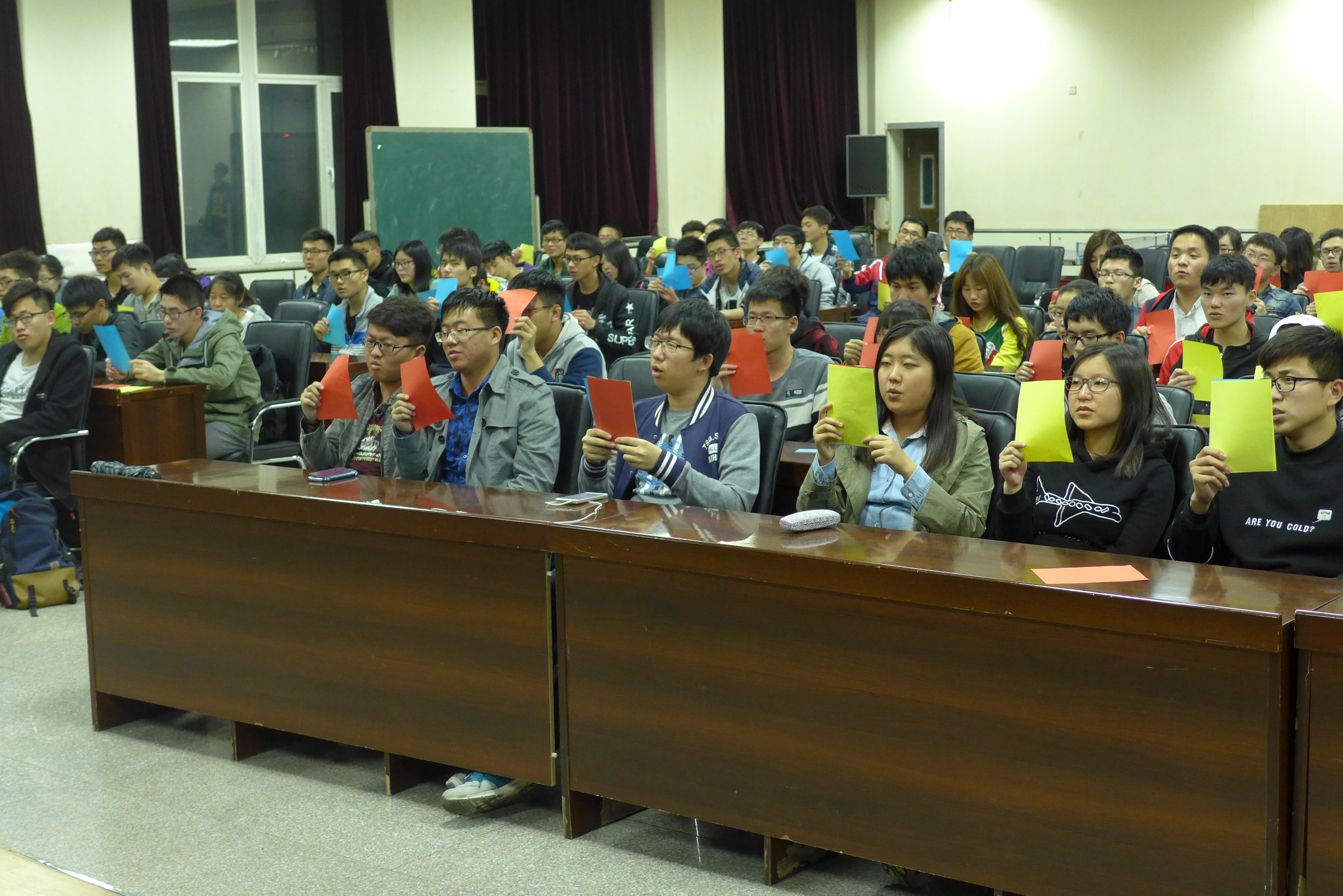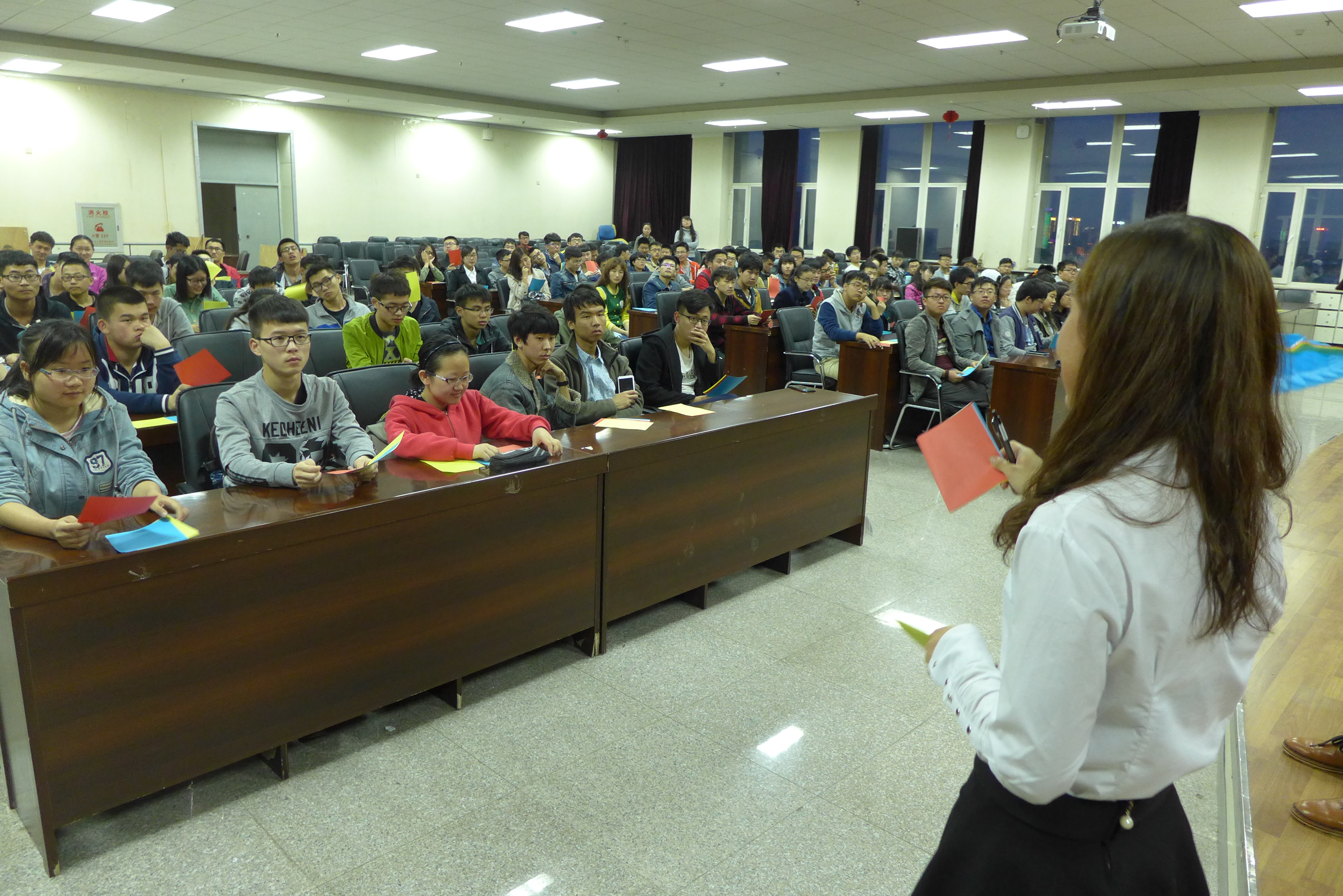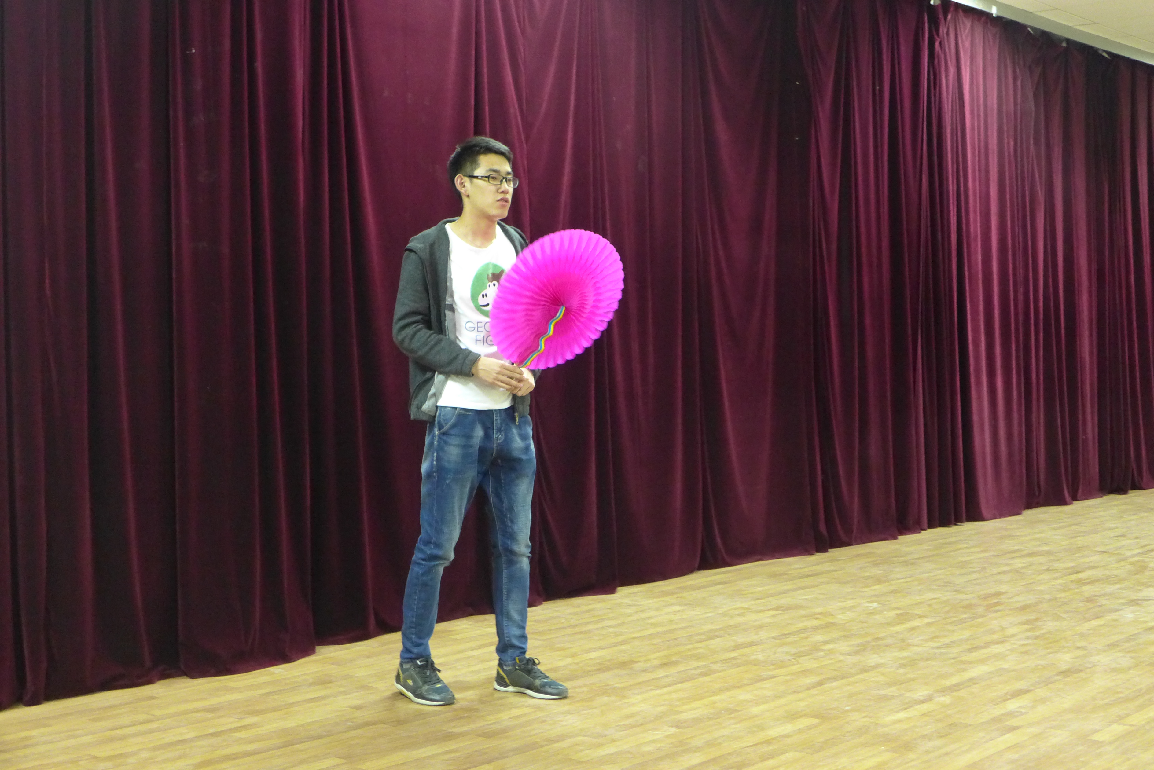 排练于晚8:30正式开始,几位团委副书记首先向大家交代了运动会当天观众啦啦队的活动流程安排、应带物品及运动会当天的注意事项。在确定了最终人选后,几位负责人着重地对队形进行了安排,包括手持三色变色扇子摆型、口号的敲定,每个动作、每个配合都进行了统一的训练。“材料群雄,气贯长虹。鲲鹏展翅,笑傲苍穹”,这句嘹亮的口号是他们青春的誓言,也是材料学院学子以及老师对材料学院运动健儿在体育盛会上大放异彩的美好祝愿。