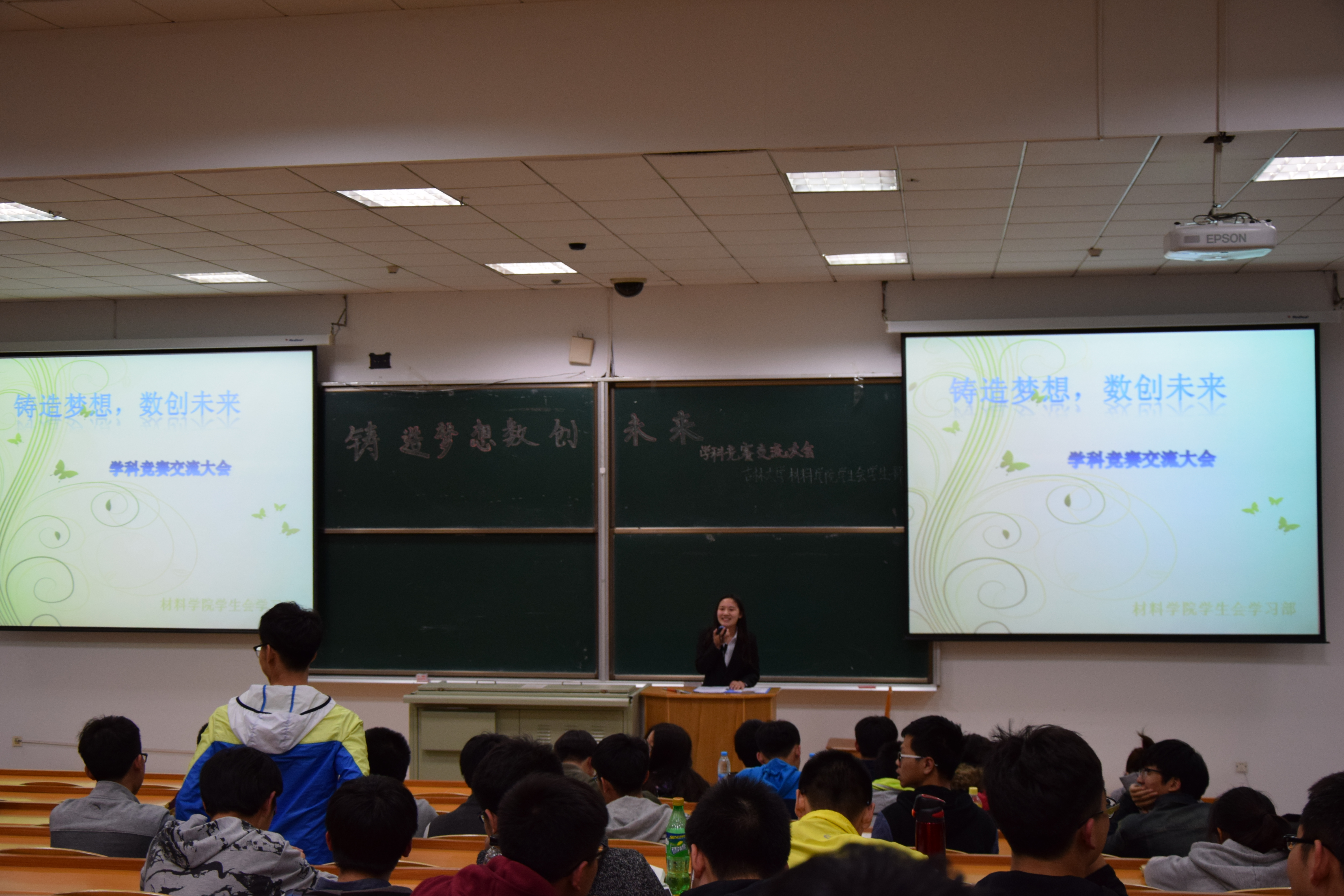 为了增进同学们对铸造大赛、数学建模、大创等学科竞赛的了解,提高同学们对学科竞赛的参与热情,让参与者进一步了解各类竞赛的基本流程和技巧方法,4月23日,材料学院学生会学习部于逸夫教育大楼A206举办了“铸造梦想,数创未来”学科竞赛交流大会。