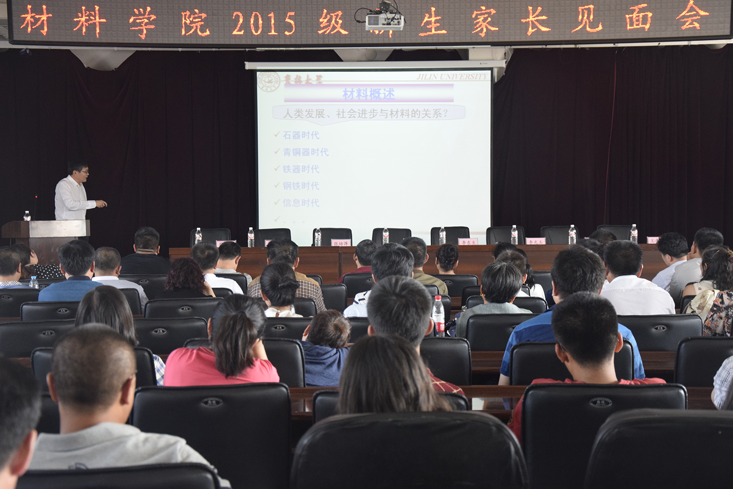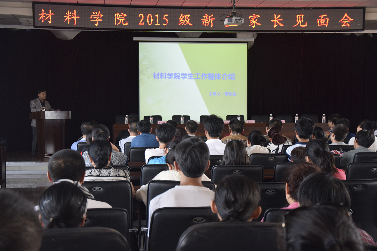 材料学院的新同学表示祝贺、向为学生成长付出辛勤劳动的家长表达敬意。院长郑伟涛教授围绕学院情况、人才队伍情况、科研、教学与本科生培养、仪器设备、对外合作、专业概述等方面的介绍了学院的情况,党委副书记李东生介绍了学院学生工作情况。在家长提问环节,老师们一一解答了家长关心的专业研究方向、就业情况、出国准备等大学生可能面临的问题。同时,老师们提醒新生注意安全问题,“人身安全”、“财务安全”,“环境安全”等方面都要提高警惕。整场座谈会在愉快的氛围下结束。 新生家长对本次会议给以了高度评价。