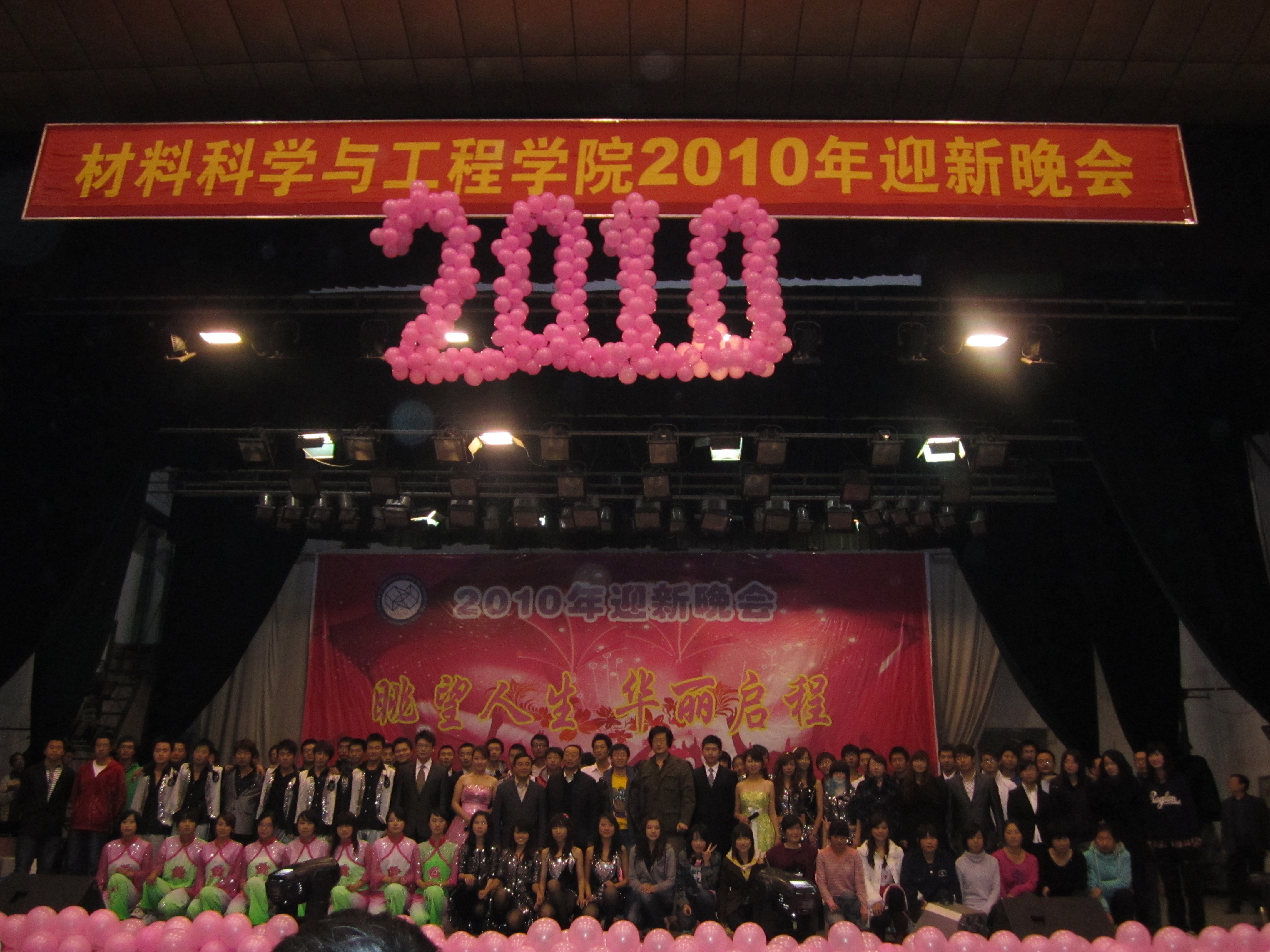 新的篇章,新的梦想,新的未来,我们展望未来,扬帆起航!经过一个多月的紧张排练,材料学院“眺望人生,华丽起程”2010级迎新晚会于10月19日晚6:30分在南岭校区文化活动中心成功举行并圆满落幕!材料学院党委书记周岩松、副书记兼副院长唐立山等党政领导和老师出席本次晚会,部分兄弟学院的领导和老师作为嘉宾也莅临晚会现场。材料学院两个校区同学全员参加,演员演出卖力,学团成员工作认真,在晚会中表现出极高的热情!