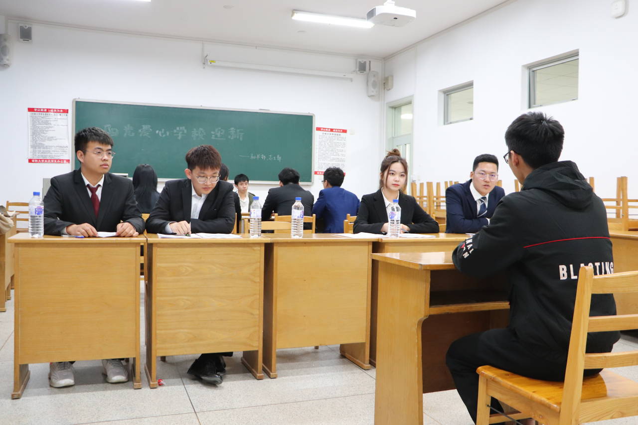 全体2020级本科生,3月31日18:00在逸夫机械材料馆410室学团各部门代表通过线上宣讲方式向各位同学系统全面地介绍了各组织部门的特色与职能,2019级辅导员刘艳丰于现场指导主持,会议持续近三个小时,为同学们能根据自身兴趣特长选择自己心仪的部门奠定基础。4月2日当天上午公示面试顺序名单,下午六时各部门面试在逸夫楼B区四楼按时召开,各学团部门负责人及工作人员合理控场使面试工作有序顺利进行,性吧