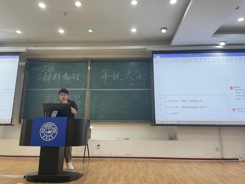 为进一步做好毕业生离校前的教育、管理和服务工作,确保毕业季期间安全、平稳,不断完善思政工作的最后一公里,贴近、贴实做好毕业季系列活动,学院本科生辅导员严冬老师、张晗禹老师于2023年6月13日共同前往中心校区敬信F区第8阶、南岭校区逸夫楼A411分别召开材料物理专业、材料类专业年级大会。