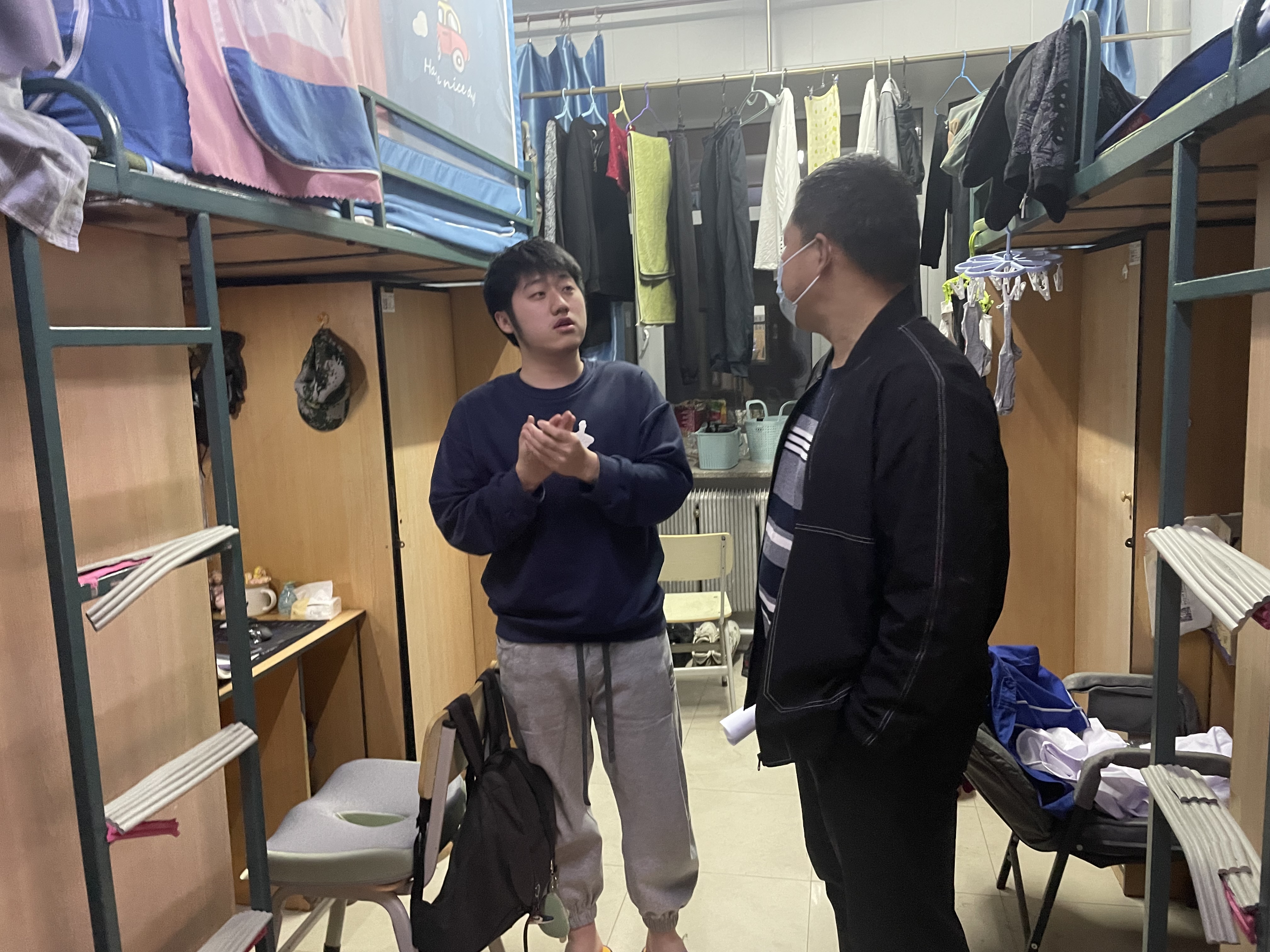 “寝室一小时”微思政:在本周走访寝室过程中,严老师继续强调寝室环境卫生及避免产生寝室安全隐患等问题,同时,严老师,深入个别患水痘学生寝室,确认相关寝室已经开展了消毒通风等工作,提醒同学们要在学习之余多关注寝室卫生环境,及时清理生活垃圾、勤消毒通风,有效避免春季传染疾病的传播;同时,在本周走访寝室过程中,严老师了解同学们的五一假期安排,提醒同学们要注意五一期间的外出安全以及保持通信畅通;期间,深入寝室进行“晚点名”工作,确保学生在校学习生活的安全稳定。