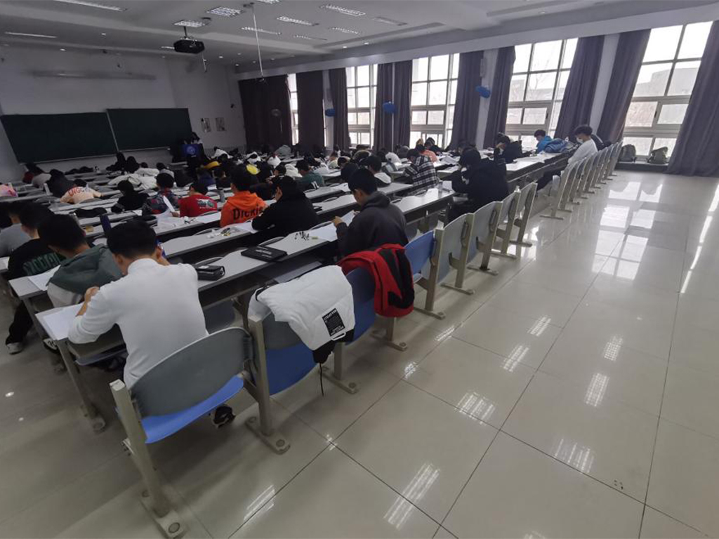 本次期中考试考核学科为工程制图与英语。本次工图考试注重考核考生对制图、正投影、立体投影的基础知识和技能的掌握和运用能力;英语考试试题与英语四级考试试题相仿,能在检验考生的英语听力水平、阅读理解能力与基础写作能力的同时提升考生对四级考试的熟练度。在考试开始前,考生们陆续进入考场,在院学生会和信望爱志愿者协会成员的组织下妥善放置书物并对号入座。待考试伊始,考场安静井然。在工程制图考试期间,考生们认真执尺绘图;在英语考试期间,也尽己所能地写出自己最好的答卷。