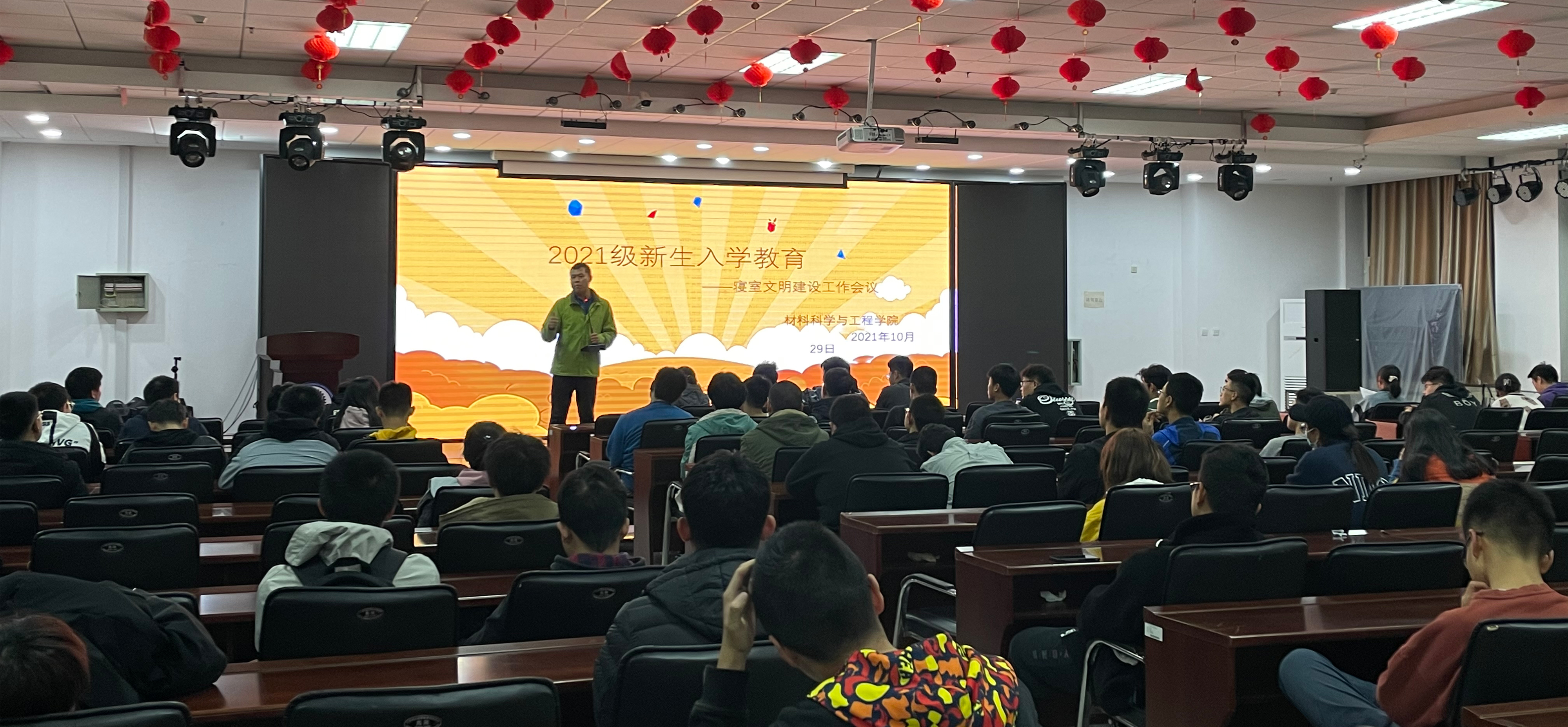 2021级辅导员严冬老师于10月29日在南岭校区逸夫机械材料馆召开2021级材料类寝室文明建设专题会议,会议由严冬老师主持,2021级材料类全体班委和全体寝室长参会。