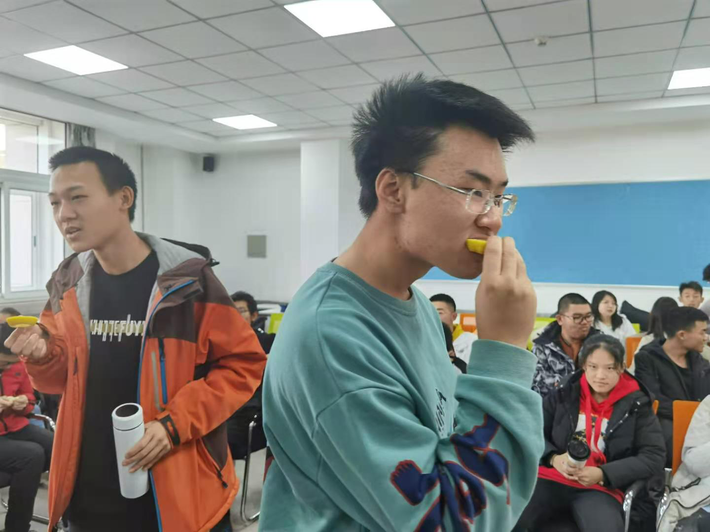 活动伊始,以抢凳子游戏开场营造氛围,同学们的热情高涨,现场气氛逐渐活跃。开场游戏结束后,主持人便宣布素拓活动正式开始,为促进不同班级同学间的沟通交流,大家首先通过抽取号码牌的方式进行分组游戏,同学们借此互相自我介绍,进一步了解组内成员。接着通过“我的故事你来猜”等新颖的游戏为大家带来了一场欢笑与激情并存的视听盛宴。活动过程中,各小组积极参与,激烈的头脑风暴,紧张的比赛节奏,使得这原本陌生的同学情渐渐熟络了起来。比赛结束后,通过统计各组得分,六组同学最终角逐出了冠军之队。在活动接近尾声之际,三个班级的同学通过合作,各自完成了带有本班级字样的作品,这在展现大家才思的同时,也增强了班级的凝聚力。“材”华横溢,料定是你,至此,2020级心理素拓活动落下帷幕。