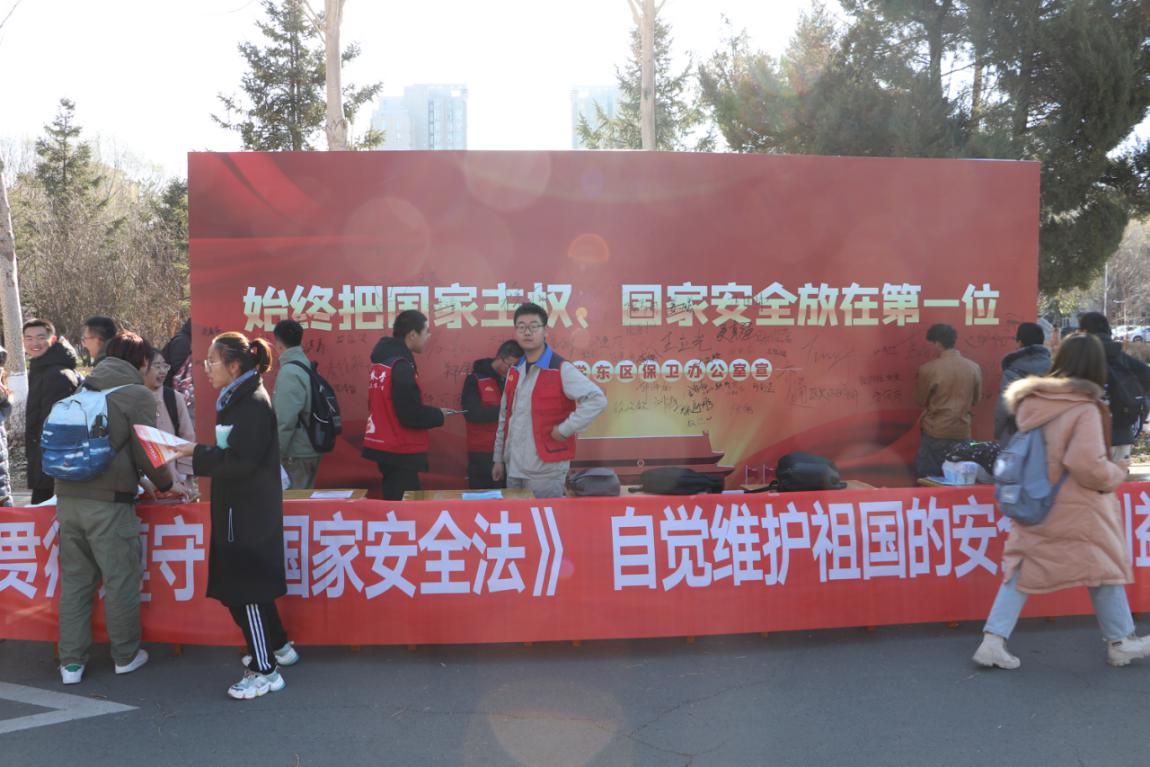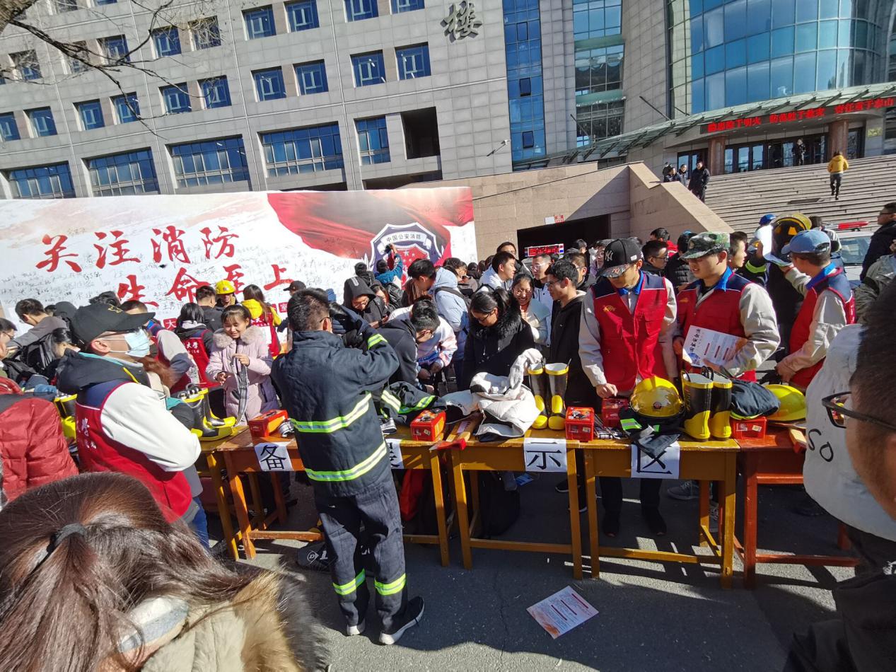 的80名同学以及其他学院的同学组织的志愿者队伍向同学们发放传单,引导学习消防和国家安全等知识,参观消防服装以及各种常见违章电器,广场各个展板前人群络绎不绝,活动达到高潮。大约一个小时后,随着展板上签满师生姓名本次消防疏散演练及安全宣传活动圆满结束。