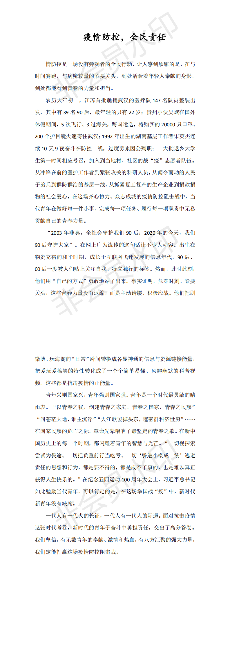 在五四期间,开展了“决胜抗击疫情·书写青春力量”主题征文活动。