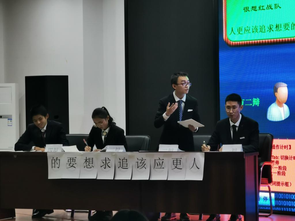 本次辩论赛的辩题为“人更应该追求想要的还是需要的”。正方持“人更应该追求想要的”论点,条理清晰地阐述己方观点。同时反方以“人更应该追求需要的”破题立论,反驳正方观点,措辞精辟,言辞犀利。在对辩盘问阶段,双方针锋相对互不相让,侃侃而谈,场下掌声连连响起。随后的自由辩论阶段,气氛达到白热化阶段,八位辩手你来我往,进行激烈的交锋,场面扣人心弦。正方稳扎稳打,不断举出事实证明,攻守浑如一体。同时反方也不断找出例子进行反击。最后正反方分别总结陈词,梳理己方的观点,点出对方的漏洞,给观众留下深刻印象。比赛结束后,经过评委十分慎重而认真的商议,最终评出本场比赛的获胜方为正方九班,最佳辩手为正方四辩。九班斩获冠军,十班获得亚军,十一班获得季军,本届性吧