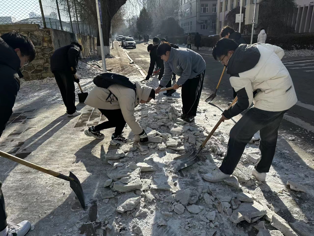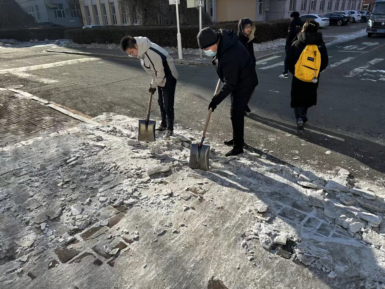 这次志愿扫雪活动得到了广大学生的积极响应。午后,志愿者们早早地来到材料馆门口,拿着铁铲、冰镐、铁锹等清扫工具,开始了紧张而有序的扫雪工作。他们以班级为单位分成小组,分工合作。大家各司其职,井然有序,充分展现了大学生的团结合作和奉献精神。同学们工作认真而高效,用自己的行动,展现了大学生的责任和担当,为校园的秩序和安全贡献了自己的一份力量。