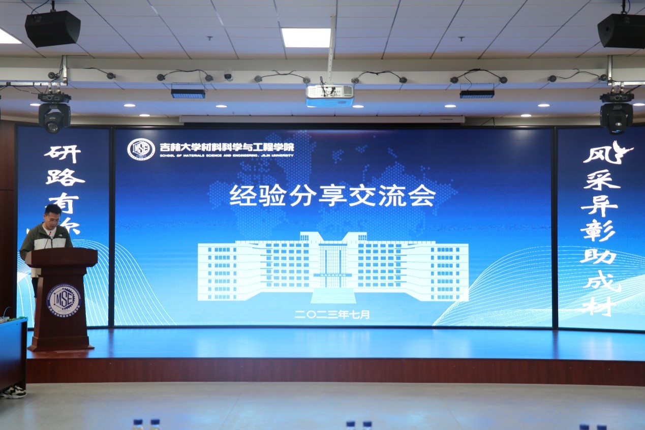 在逸夫机械材料馆八楼报告厅举行了朋辈交流分享会。本次会议由研究生代表王天帅主持。