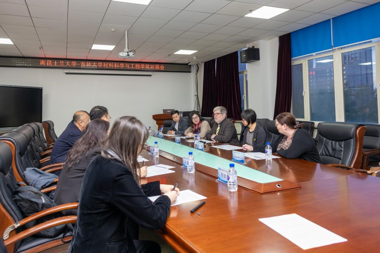 与澳大利亚南昆士兰大学对接会在逸夫机械材料馆 410 会议室举办。澳大利亚南昆士兰大学科研事务副校长约翰·贝尔(John Bell)出席工作会议并致辞。学院党委书记刘远、副院长崔小强、王文权,汽车材料教育部重点实验室主任郎兴友,国际合作与交流处学生项目管理科科长刘爽,学院外事秘书杨美晨参加本次会议。本次会议由副院长崔小强主持。