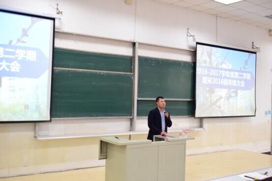 大会共分为三个部分:由于高考即将来临,为了杜绝替考,严老师首先为同学们讲解了替考的严重后果替考不仅仅是诚信问题,更是触犯了《刑法》的一种犯罪行为,在法律规定的国家考试中(如高考)替考的,构成考试作弊罪,依法处拘役或管制,并处或单处罚金。所以,一旦某位同学涉及或参与了替考,其严重后果,很可能是一生都无法弥补的讲述完替考的严重后果,严老师又对即将到来的期末考试提出了自己的要求:严肃考试纪律,杜绝考试作弊是每一位同学必须做到的,一旦某位同学被发现有作弊现象,一定会严肃处置绝不姑息因为能否做到诚信考试,是一个学生最基本的品质的体现最后,严老师把有关考试及暑期的各项安排PPT的形式放映给大家,其中包括各项考试须知以及时间安排,还有假期的起始日期等严老师表示,希望在期末复习的这段时间里,每一位同学都能给自己定一个位,知道自己想要什么,该做什么,认真复习,不攀比,不盲目,考出自己理想的成绩。在同学们的掌声中,此次年级大会完满结束。