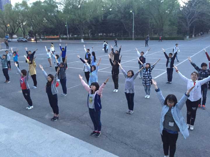 学生风采,材料学院组织参赛学生自4月24日起在文化活动中心前训练。