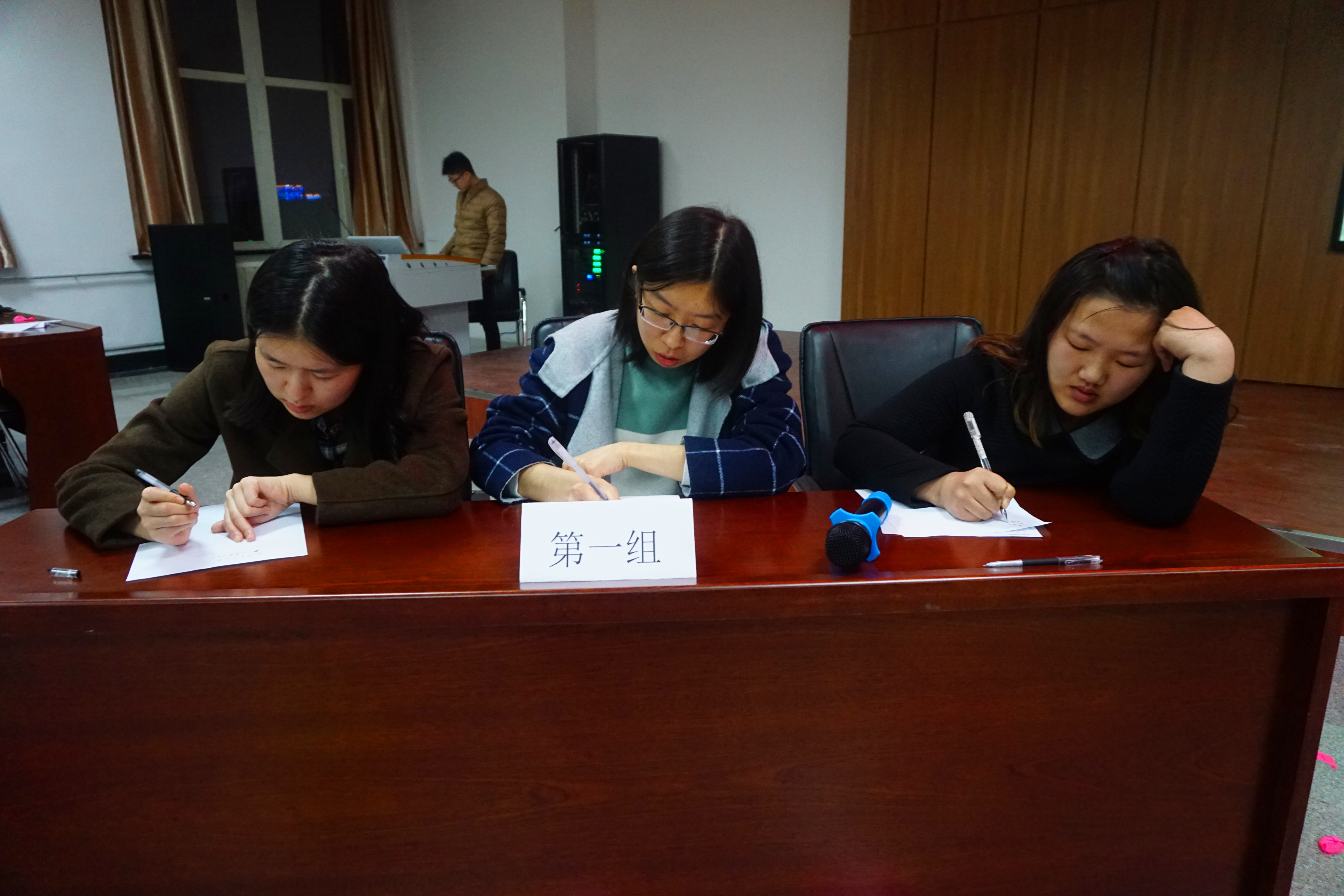 本次诗词大会共三个环节,必答题部分,抢答题部分和“飞花令”。第一轮必答题:每组参赛选手有五道试题,由主持人依次宣读上句(或下句),必答队伍答出下句(或上句)。这一轮的诗句相对较为简单,同学们充分展示了自己的文化功底,难分伯仲。第二轮抢答题环节,由主持人问上句,参赛者回答下句,当主持人读完题并宣布“请抢答”时,各组成员可扎破面前规定题号的气球,最先扎破气球的队伍获答题资格。本轮比赛场面火爆,既考查了参赛选手的诗词功底,又考验着参赛选手的反应能力。经过前两轮的比赛,第一组以最高分直接晋级决赛,第四组和第八组以第二名和第三名分别进入第三轮的PK赛,胜利者与第一组进行最终决赛。第三轮“飞花令”真正考验着参赛选手的诗词底蕴,本轮比赛要求参赛选手根据主持人提出的关键字,答出带有该字的古诗词,在三分钟的准备时间内,各组选手都奋笔疾书,为自己的小组做最后一搏。最后的对决更是精彩纷呈,第一组选手沉稳大方地说出自己准备好的古诗词,最终击败了第四组,成为本场比赛当之无愧的冠军。场下观众也不甘示弱,纷纷积极参与互动,获得精美礼物。