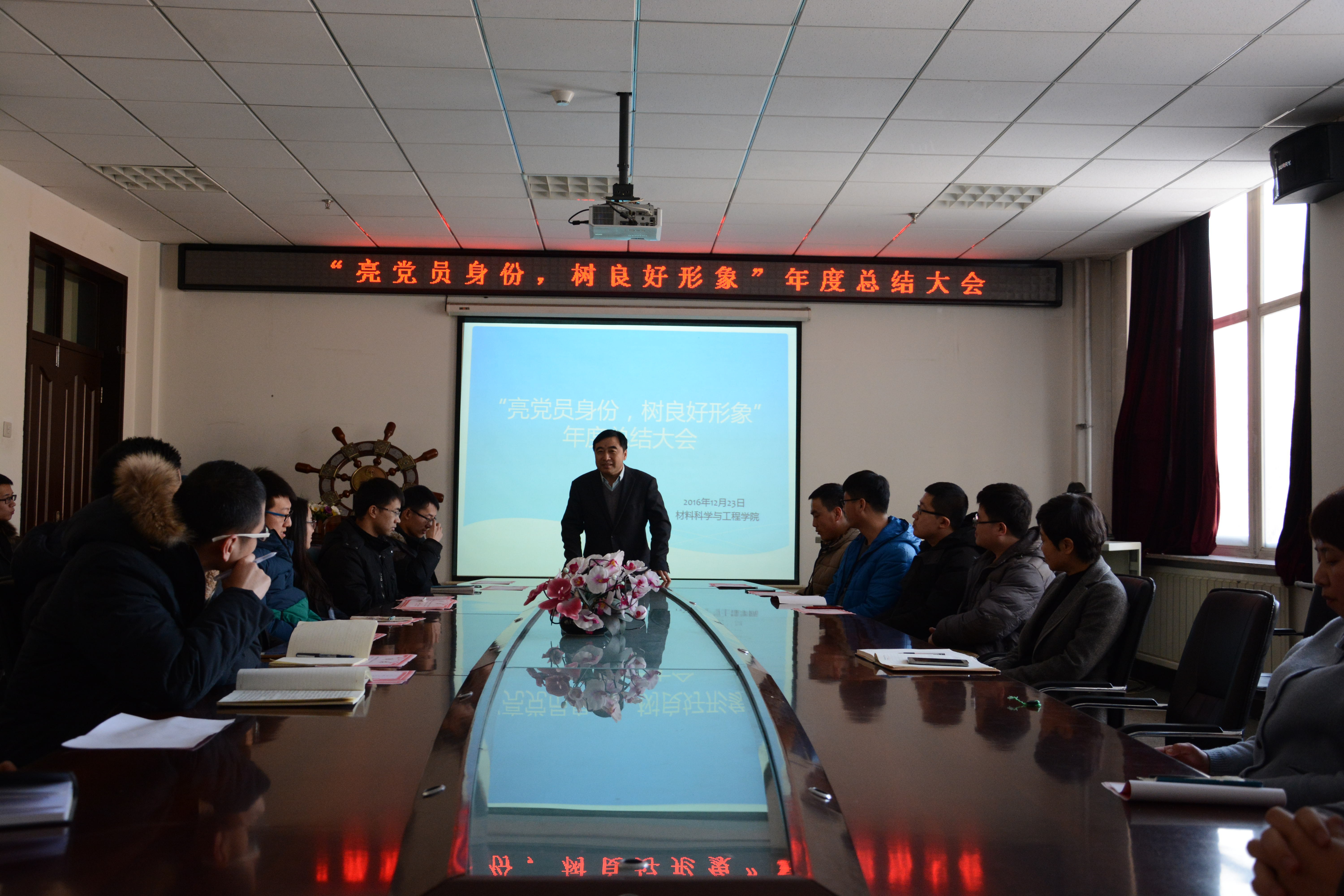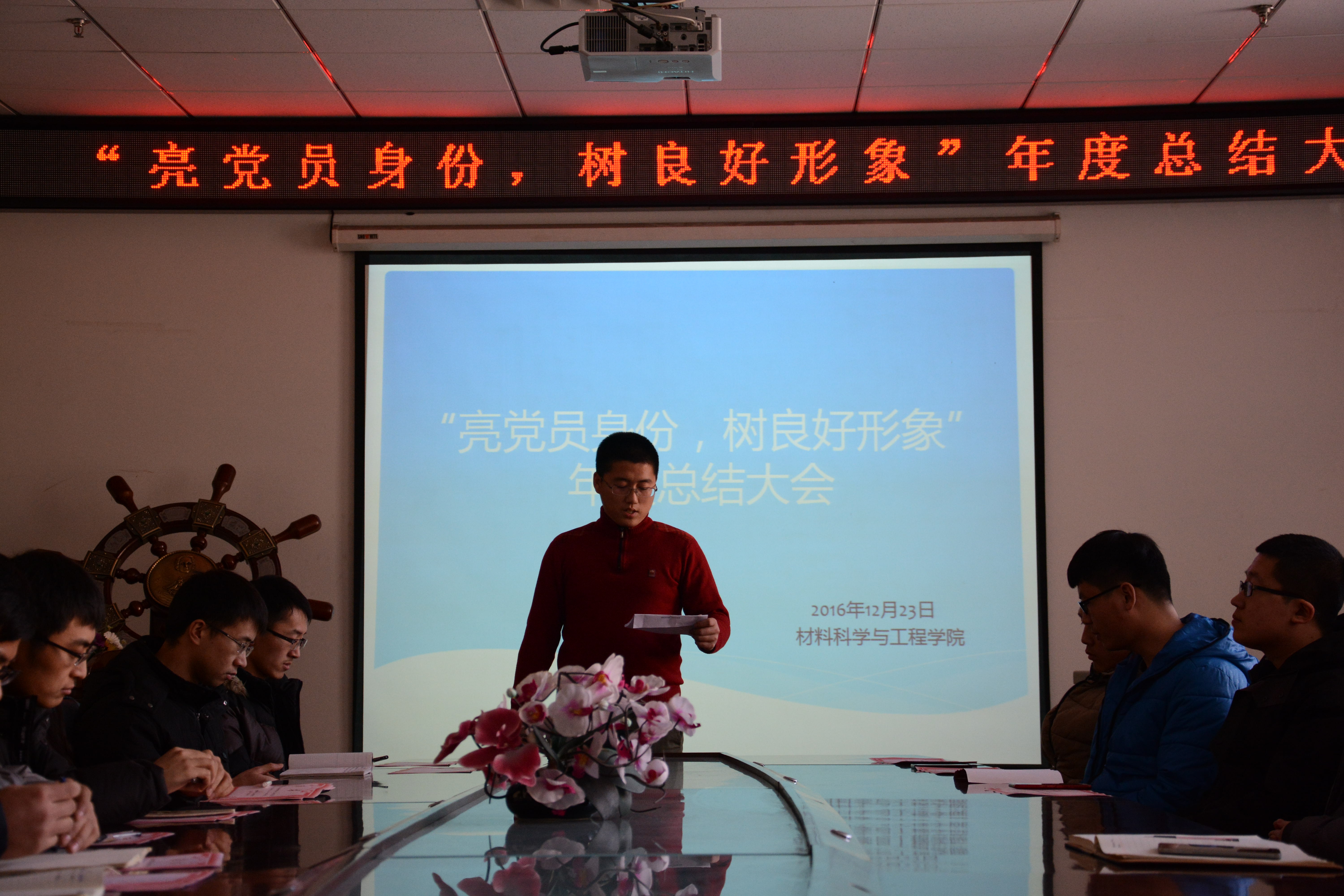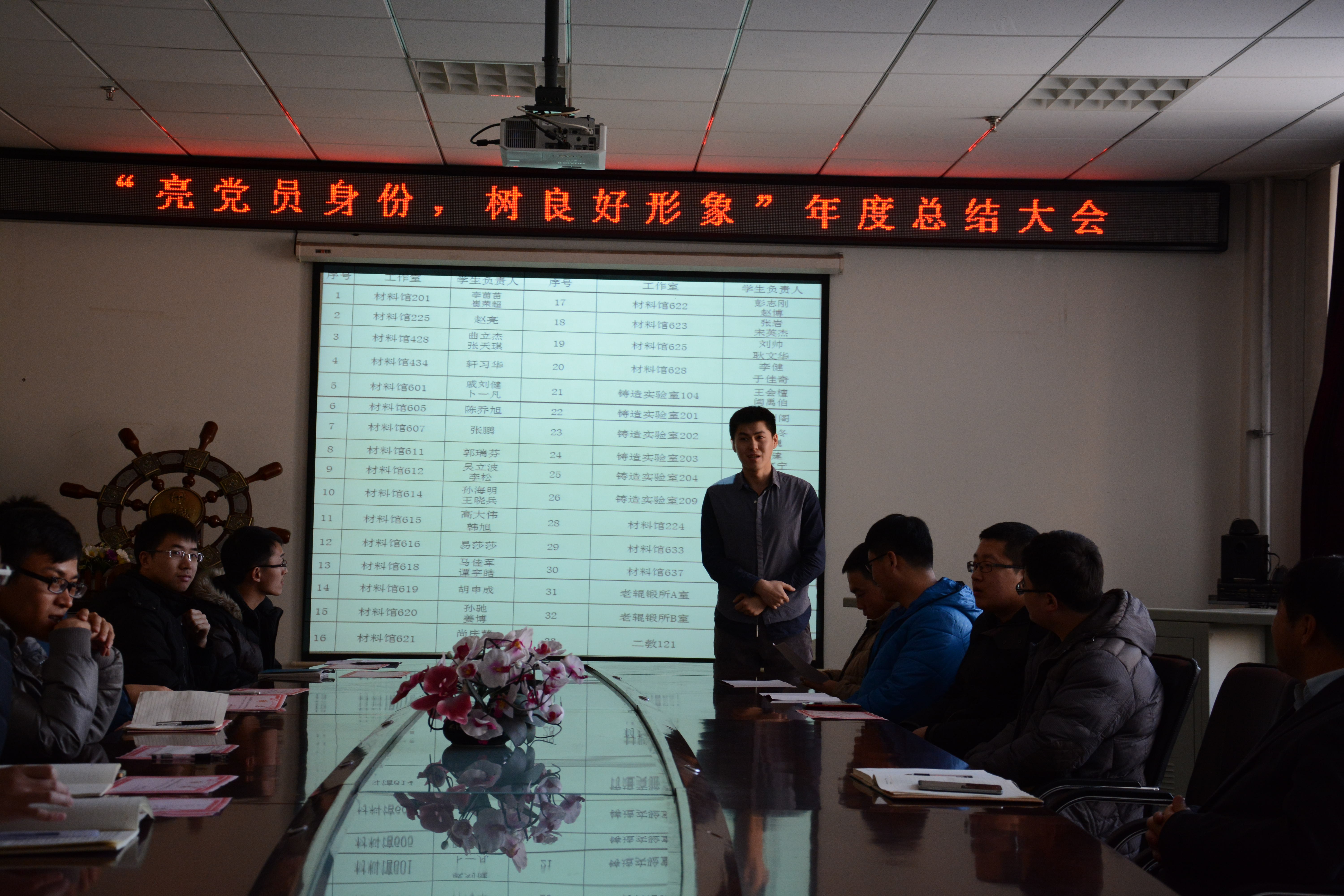 于2016年12月23日下午,在材料学院党委的指示下组织召开了“亮党员身份,树良好形象”年度总结大会,院党委书记周岩松,院党委副书记于雅琳,院研究生秘书刘徽老师及材料学院各个工作室学生负责人参加了此次会议。