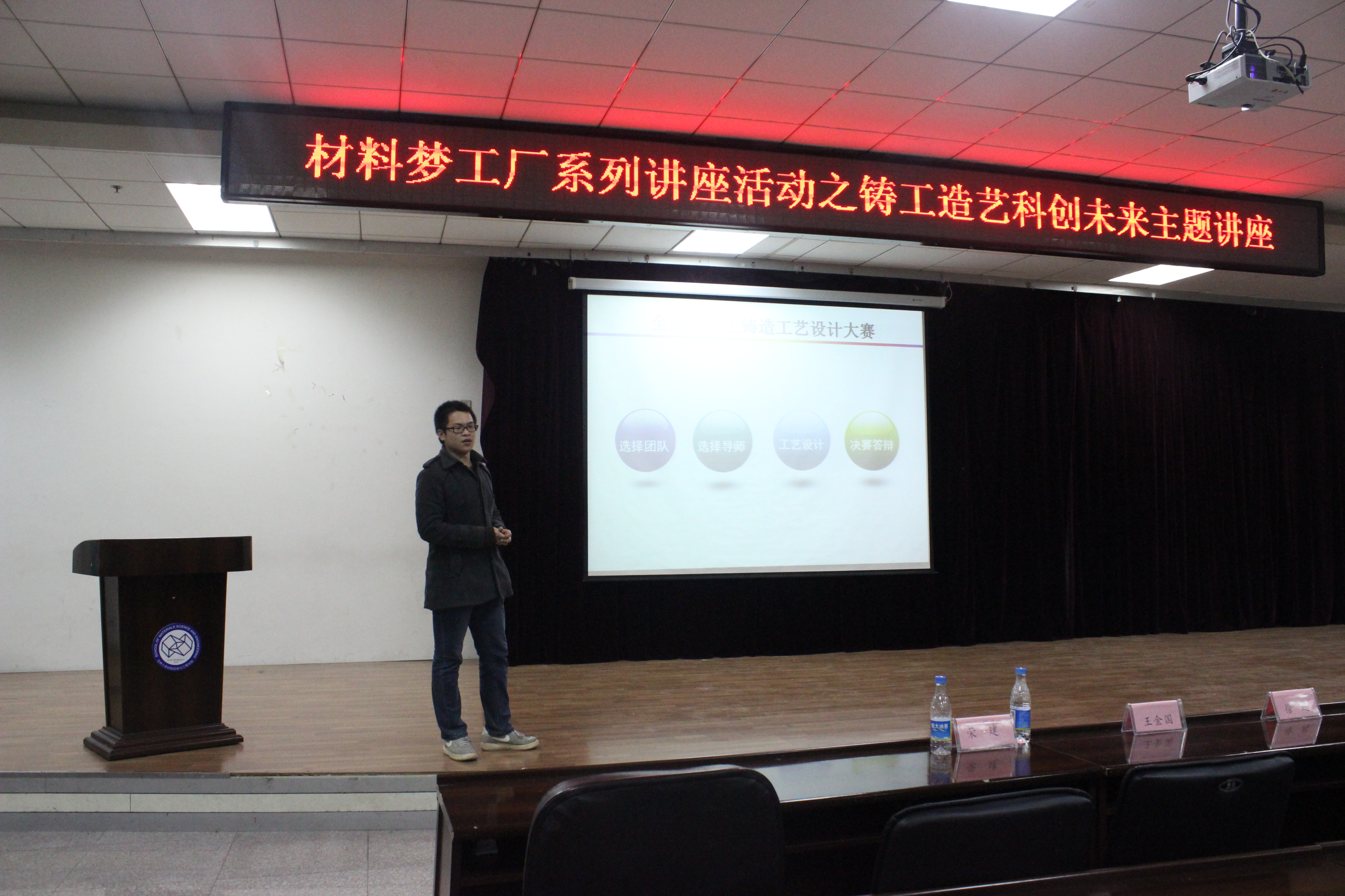 活动开始,主持人介绍活动主讲者及到场嘉宾,简单介绍了活动内容。随后,主讲嘉宾材料学院材料加工系系主任王金国教授,材料加工系硕士、2014年通过“创新人才”保送研究生荣建讲述了大创项目的选题及组队应注意的问题,希望同学们在日常的学习生活中善于发现,多加观察,提出具有创新性和可行性的课题。永冠杯”第七届全国铸造大赛一等奖获得者,现已被保送至上海交通大学徐起普及了铸造工艺设计理论,讲述了铸造工艺设计实际操作技能,并倡导同学们采用先进的设计方法和手段进行工艺设计,这可使同学们能快速有效地得到一些工作技能。之后观众就讲座宣讲内容提出问题,王金国教授等人对其做出了解答。至此本次活动圆满结束。
