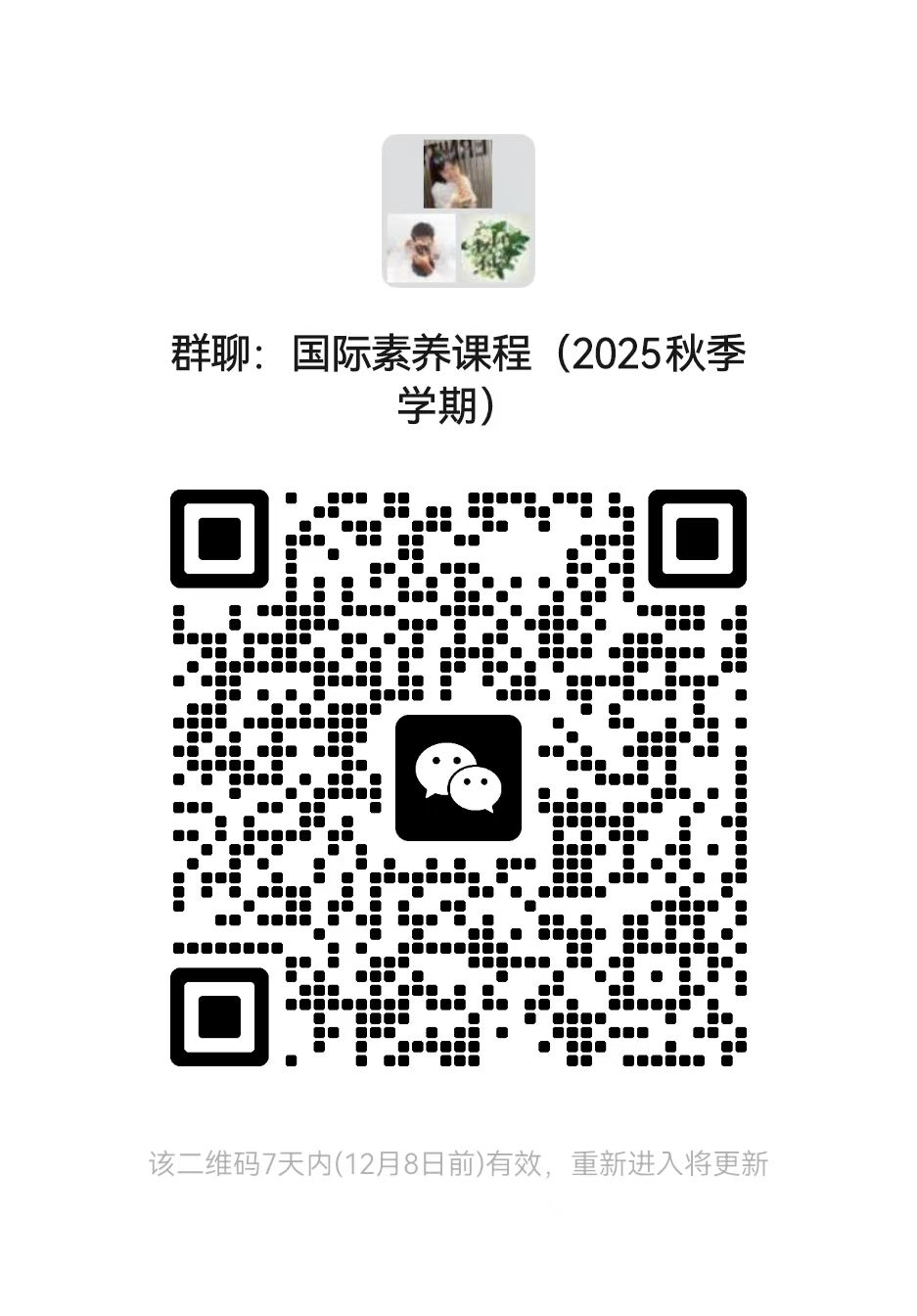 国际素养系列课程将于2025年12月开课,预计在2025年4月末结束。本次系列课程希望学生深入了解国外教学模式、提升批判性思维和多元文化认知及国际化素养能力。通过国际人才深造培养的学习,促进大学生多元升学与就业发展;通过海外学术课程与国际交流模块课程的学习,培养学生科研视野和学术能力,了解国内外教学模式差异,接触世界顶尖高校的新知识平台。