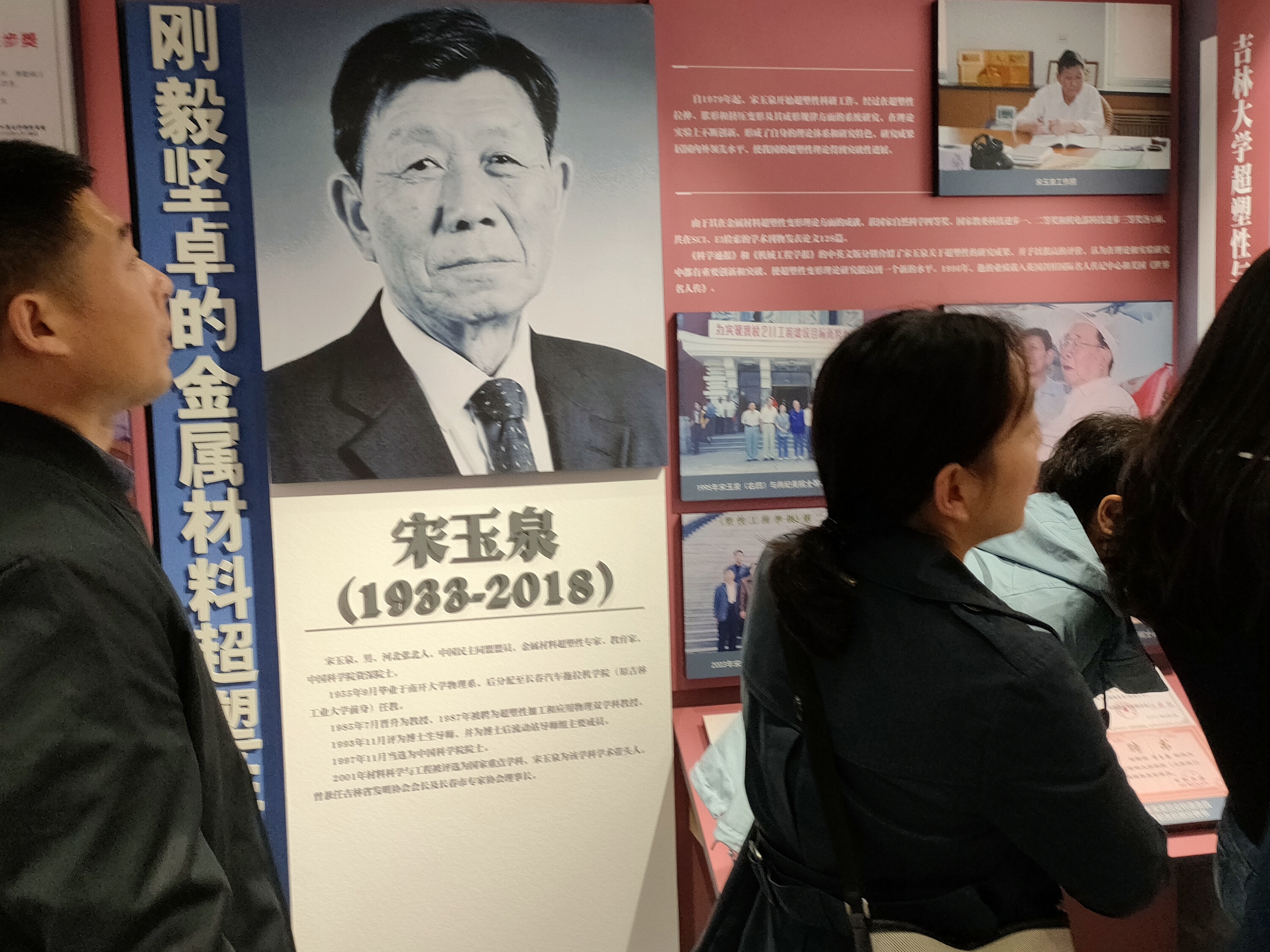 历史名人纪念馆分为序厅、“六校肇始 为国而生”“高瞻远瞩 强基铸魂”“与国同行 风雨耕耘”以及“薪火弦歌 赓续传承”多个展区。在讲解员的带领下师生们参观了1号馆,学习了林枫、饶斌、江一真、李四光、陈先舟、任抟九等64位先贤们一路北上的奋斗事迹;随后,师生们自行参观了2号馆的7个展区,一张张泛黄的照片,一件件老旧的实物,一个个生动的故事,一幕幕动人的影像把大家带回了那段峥嵘岁月,唤起师生心中最深沉的感动。在金属材料超塑性专家宋玉泉院士展区前,师生们再次回顾了宋院士为教育事业奉献毕生智慧和才华的人生经历,他孜孜奋进、无私奉献的精神让大家感动且充满力量。