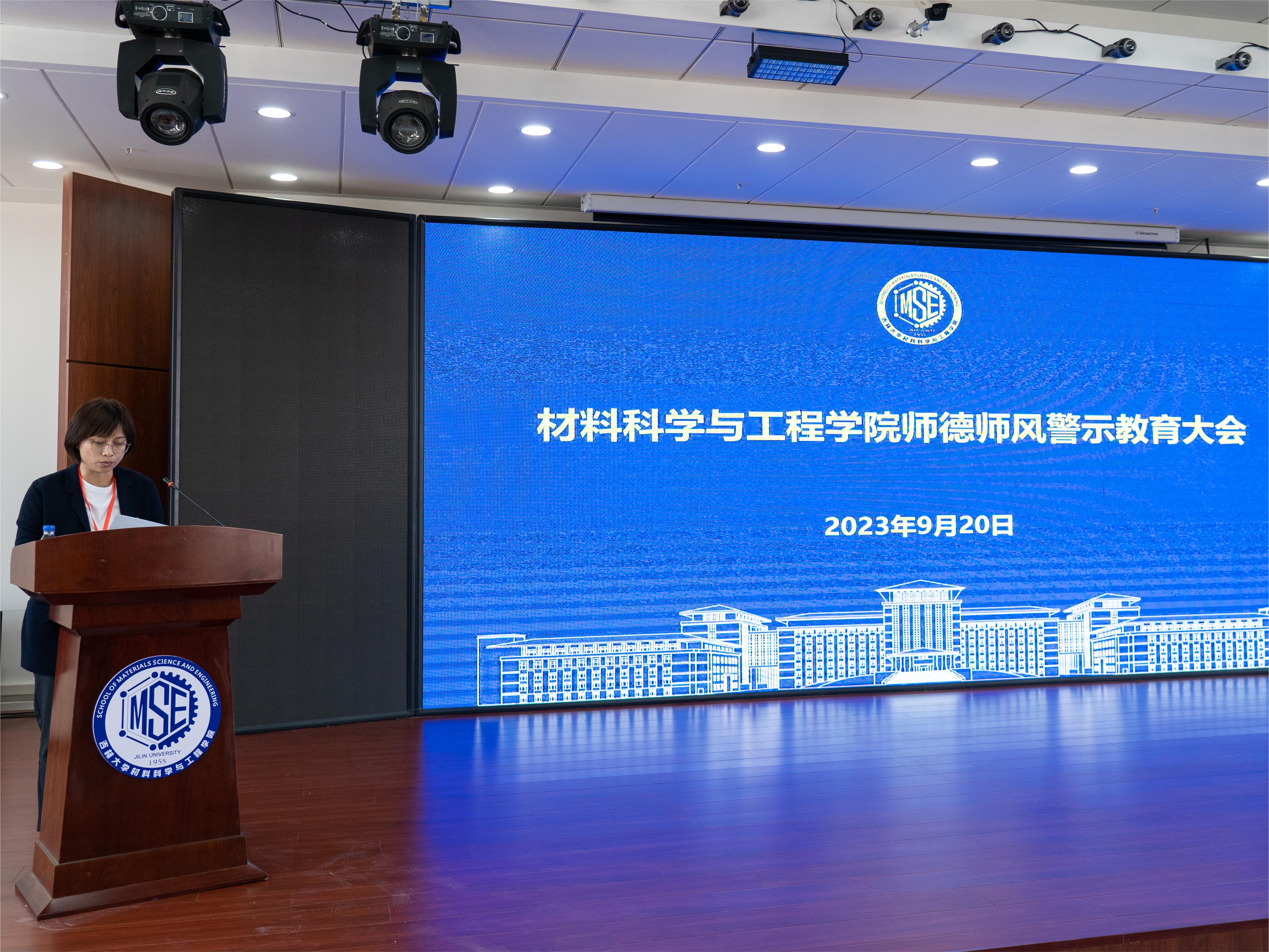 在材料馆八楼报告厅召开师德师风警示教育大会,学院领导班子、教工代表参会。会上,党委副书记兼副院长华蕊原文领学了《新时代高校教师职业行为十项准则》内容,引导全体教师全面理解和准确把握准则内涵要义,提升全体教师的规则意识;行政副院长辛颖通报了违反高校教师职业行为十项准则典型案例,引导教师以案为鉴,做到警钟长鸣。