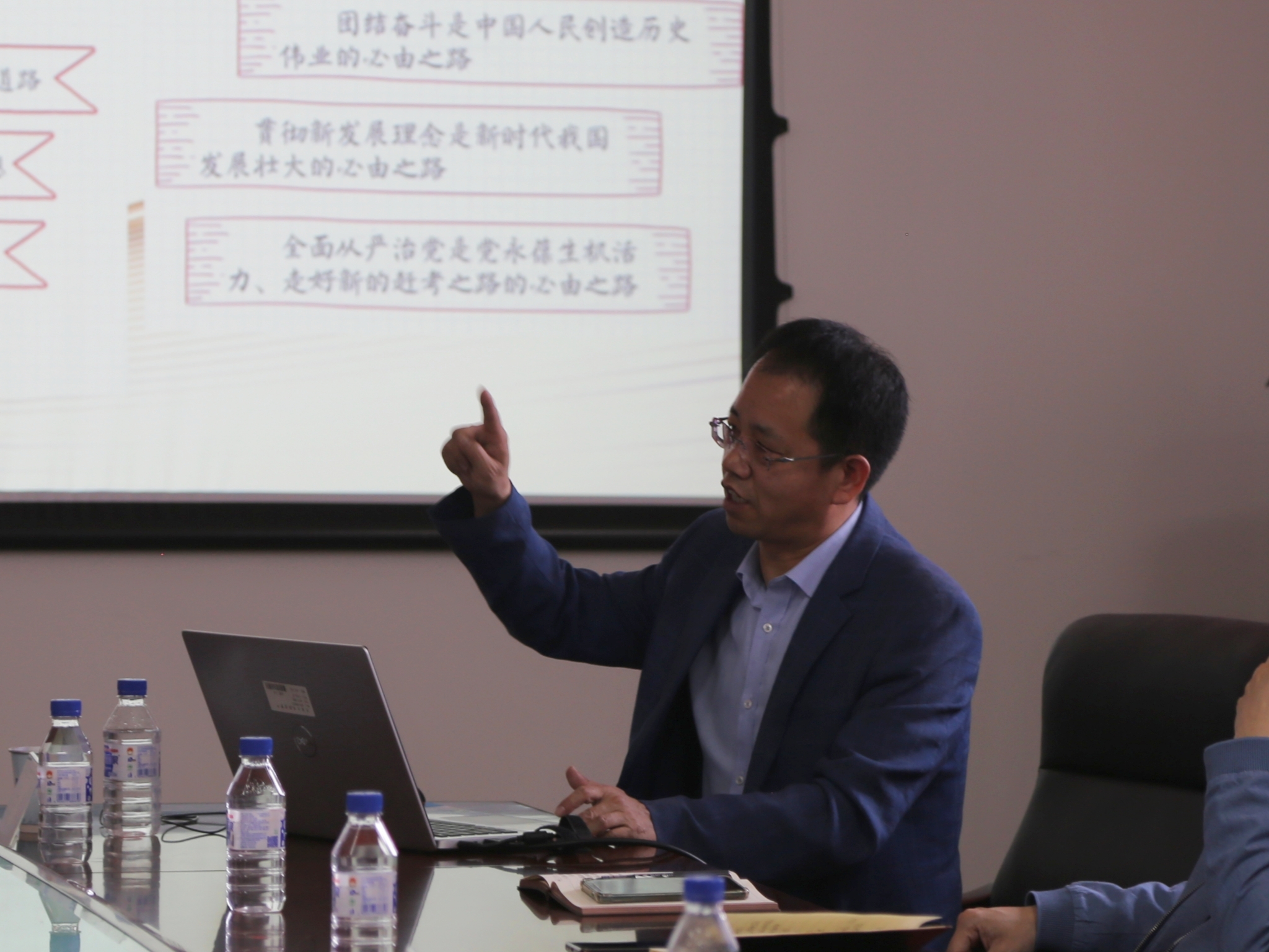 哲学社会学院院长、教授白刚以“以党的‘自我革命’引领社会革命”为题作专题辅导报告。学校主题教育第四巡回指导组组长刘炳恩应邀出席报告会,会议由材料科学学院党委书记刘远主持。