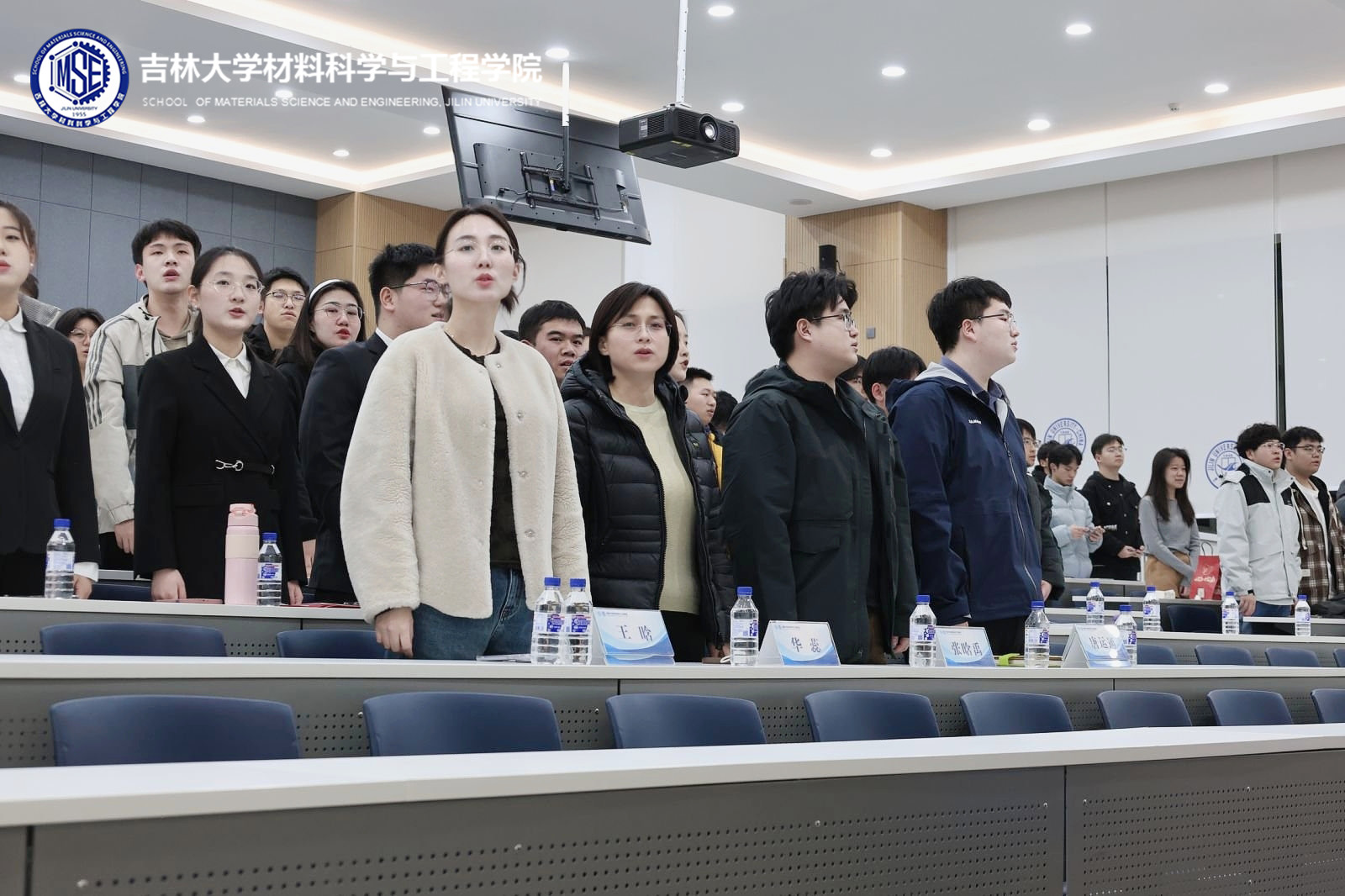 大会在庄严的团歌奏唱中拉开帷幕,全体参会人员起立,齐声高唱团歌,展现出青年学子的蓬勃朝气与昂扬精神。