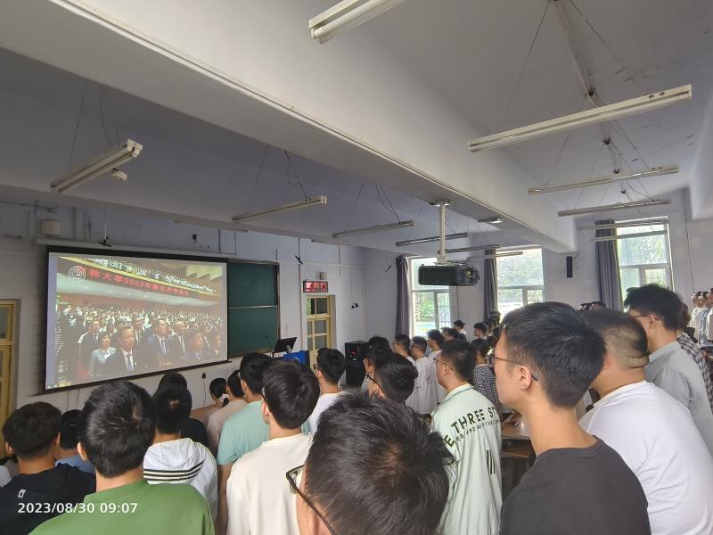 在爱校荣校教育环节,组织全体新生同学线上观看开学典礼,现场参加学院开学典礼,充分感受性吧