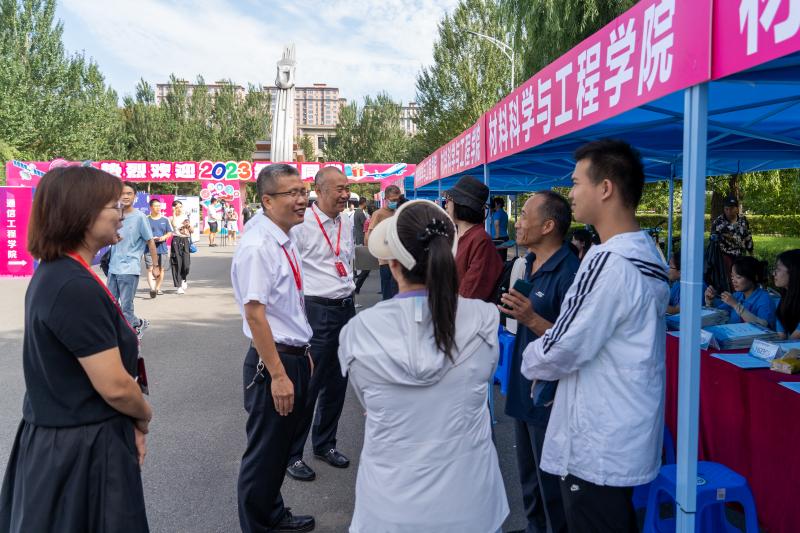 在迎新工作期间,校领导、院领导先后走访了迎新现场,对学院迎新工作人员、新生同学以及家长进行了慰问。