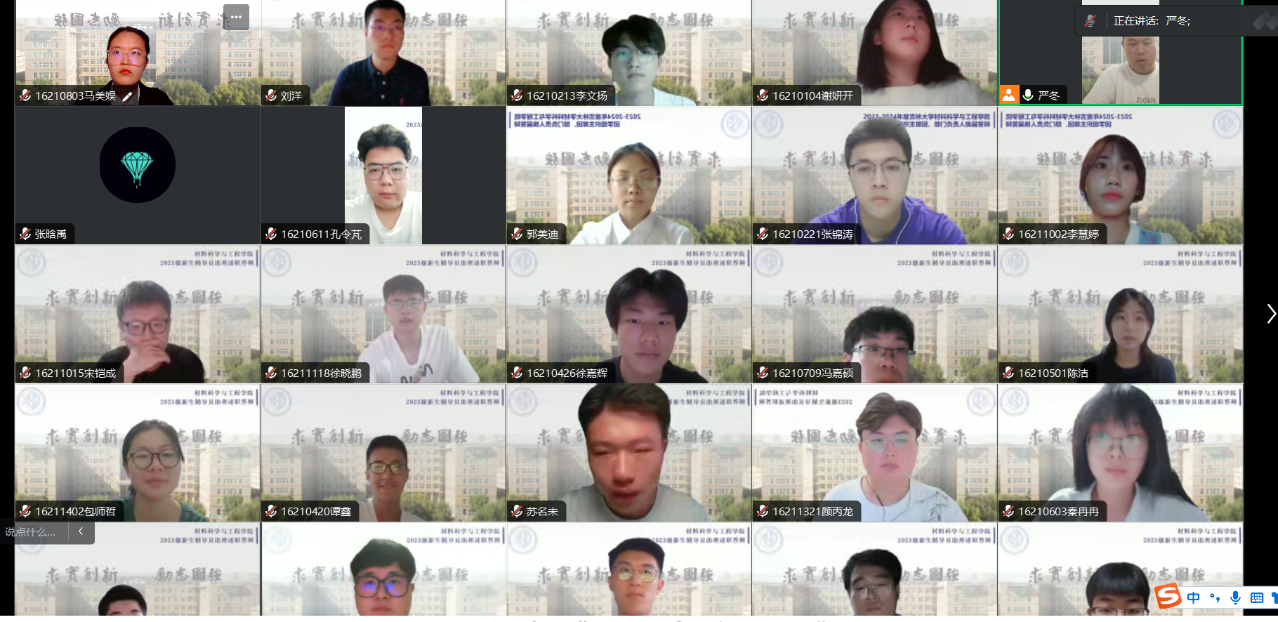 会议伊始,严老师详细介绍了辅导员助理在新生工作中的重要作用,并对本次选拔工作的规则与标准进行了解读,力求选拔出学习成绩优异、有责任心、肯担当、工作能力突出的同学。在述职答辩环节,参与竞选的同学依次进行线上述职答辩,分别就个人情况、学生工作情况、工作优势进行阐述,并且做出了详细的未来规划和工作设想。
