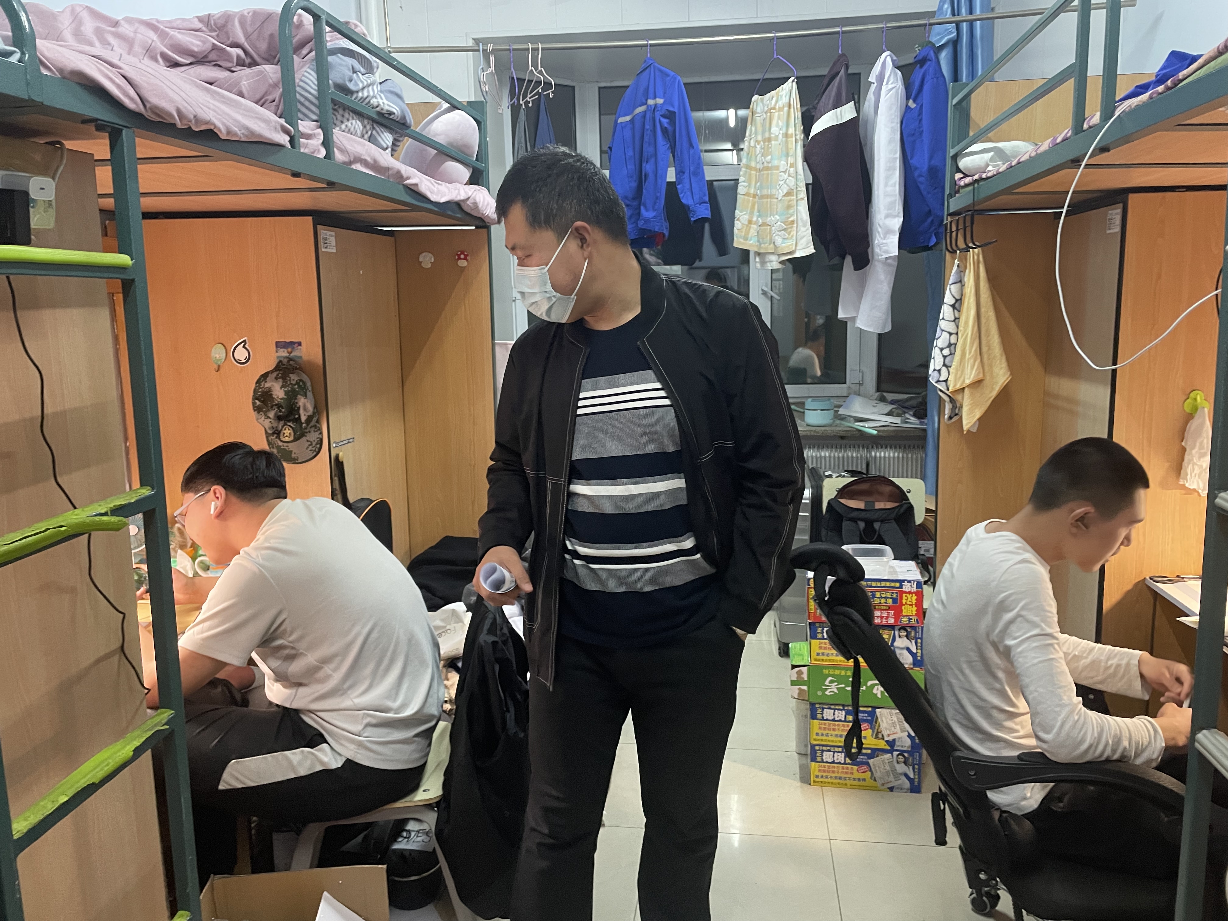 “寝室一小时”微思政:在本周走访寝室过程中,严老师继续强调寝室环境卫生及避免产生寝室安全隐患等问题,同时,严老师,深入个别患水痘学生寝室,确认相关寝室已经开展了消毒通风等工作,提醒同学们要在学习之余多关注寝室卫生环境,及时清理生活垃圾、勤消毒通风,有效避免春季传染疾病的传播;同时,在本周走访寝室过程中,严老师了解同学们的五一假期安排,提醒同学们要注意五一期间的外出安全以及保持通信畅通;期间,深入寝室进行“晚点名”工作,确保学生在校学习生活的安全稳定。