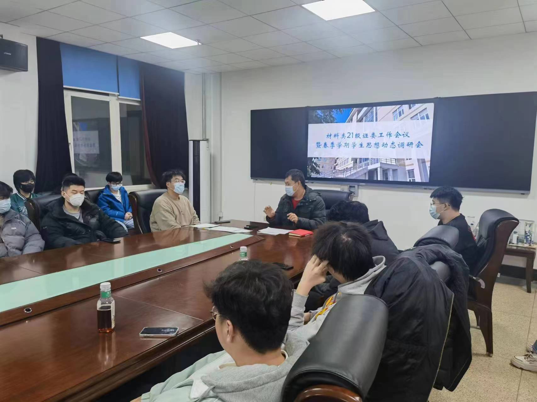 于2023年3月2日晚于南岭校区逸夫机械材料馆410会议室,召开了材料类2021级班委工作会议暨春季学期学生思想动态座谈会,材料类2021级本科生辅导员严冬老师及材料类2021级班委会成员、部分学生代表参加了本次会议。