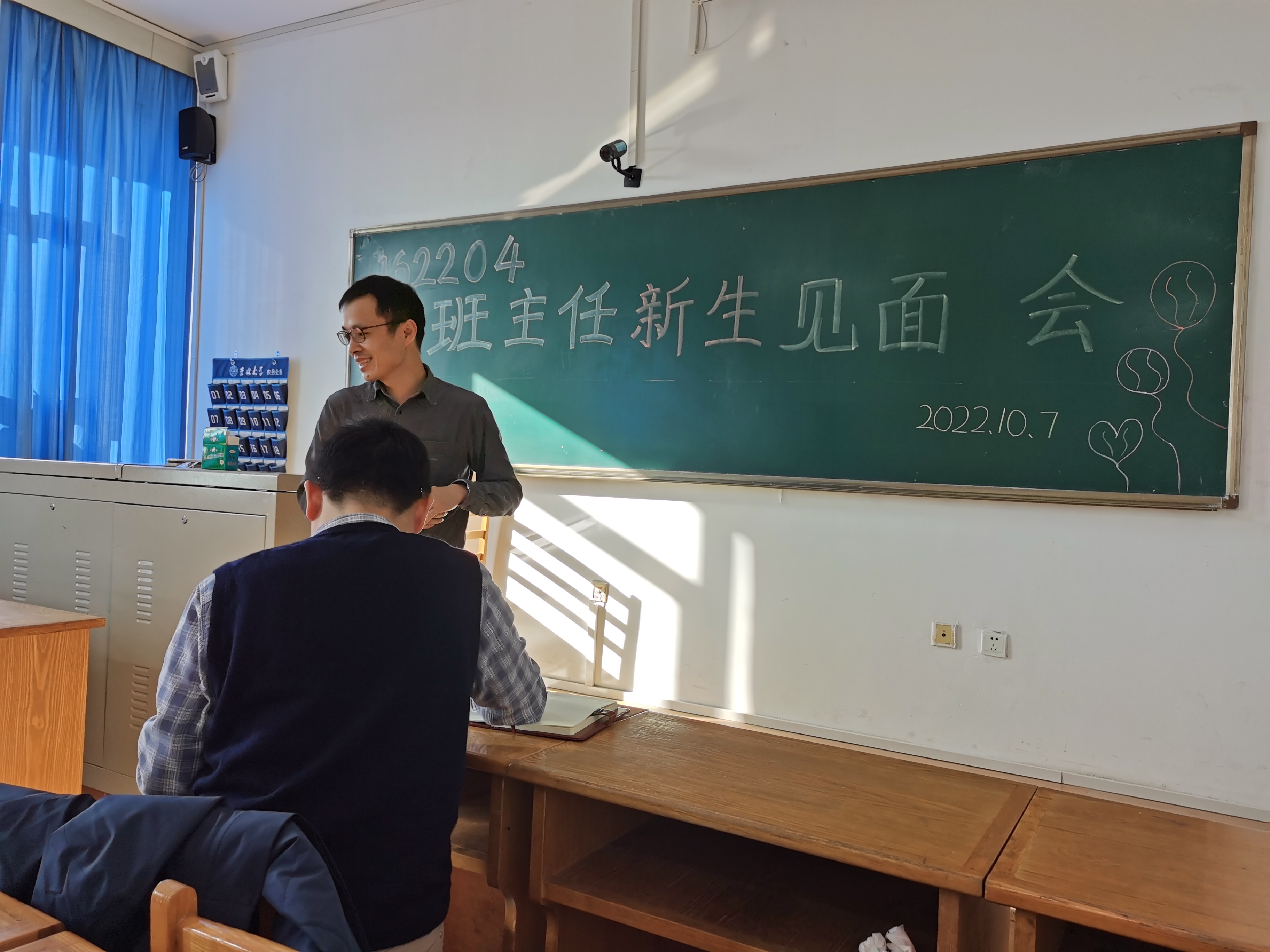 162204班新生研讨会于2022年10月7日在逸夫教育大楼举行,班级同学积极参与,班主任郎兴友、韩高峰老师主持此次会议。