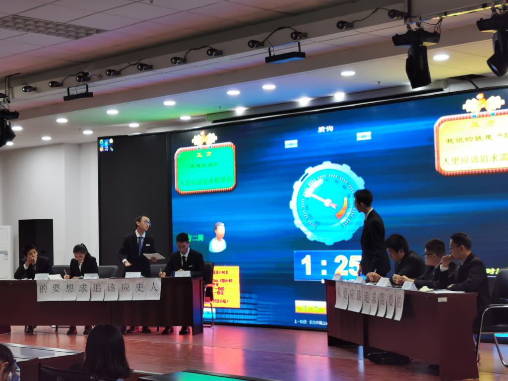 本次辩论赛的辩题为“人更应该追求想要的还是需要的”。正方持“人更应该追求想要的”论点,条理清晰地阐述己方观点。同时反方以“人更应该追求需要的”破题立论,反驳正方观点,措辞精辟,言辞犀利。在对辩盘问阶段,双方针锋相对互不相让,侃侃而谈,场下掌声连连响起。随后的自由辩论阶段,气氛达到白热化阶段,八位辩手你来我往,进行激烈的交锋,场面扣人心弦。正方稳扎稳打,不断举出事实证明,攻守浑如一体。同时反方也不断找出例子进行反击。最后正反方分别总结陈词,梳理己方的观点,点出对方的漏洞,给观众留下深刻印象。比赛结束后,经过评委十分慎重而认真的商议,最终评出本场比赛的获胜方为正方九班,最佳辩手为正方四辩。九班斩获冠军,十班获得亚军,十一班获得季军,本届性吧