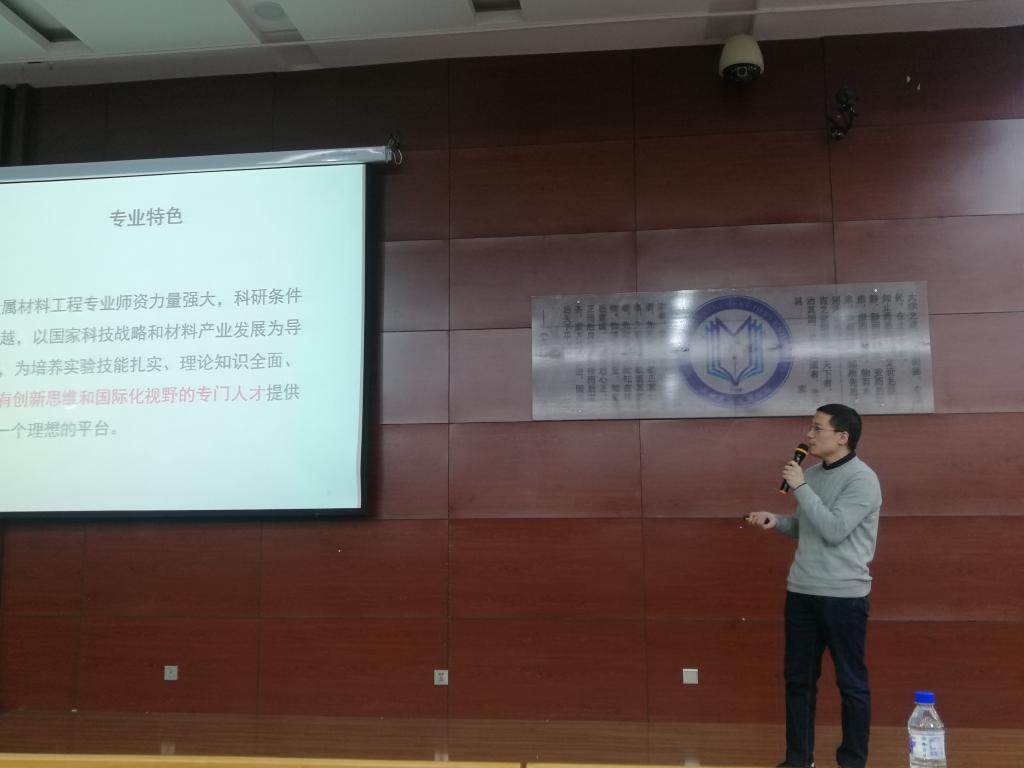 大会第一项,由主管本科教学工作的王文权副院长发言讲话,王文权院长宣读了2018级本科生专业分流细则,强调了在专业分流过程中需要注意的问题。大会第二项,由李东生书记讲话,李书记突出介绍了在分流中可能出现的安全管理问题,并用实际案例教导同学们在选择专业过程中应抛开功利的思想,择己所爱,择势所需,鼓舞同学们树立更高远的志向。大会第三项,分别由材料科学与工程、无机非金属材料工程、材料成型及控制工程各位系主任详细介绍了本专业的专业概况、专业特色优势、师资力量等一系列同学们关注的问题。