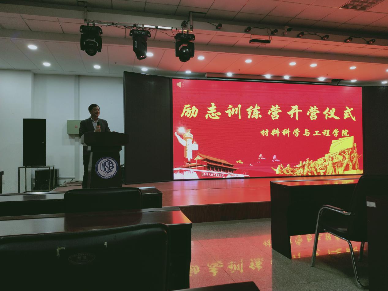 学风建设,坚持以人为本的发展思想,提高学院本科生综合素质,充分发挥学院学生党员的先锋模范作用,材料学院于2019年11月8日晚在逸夫机械材料馆八楼举行了材料学院励志训练营开营仪式。学院党委副书记兼副院长李东生老师主持本次开营仪式。