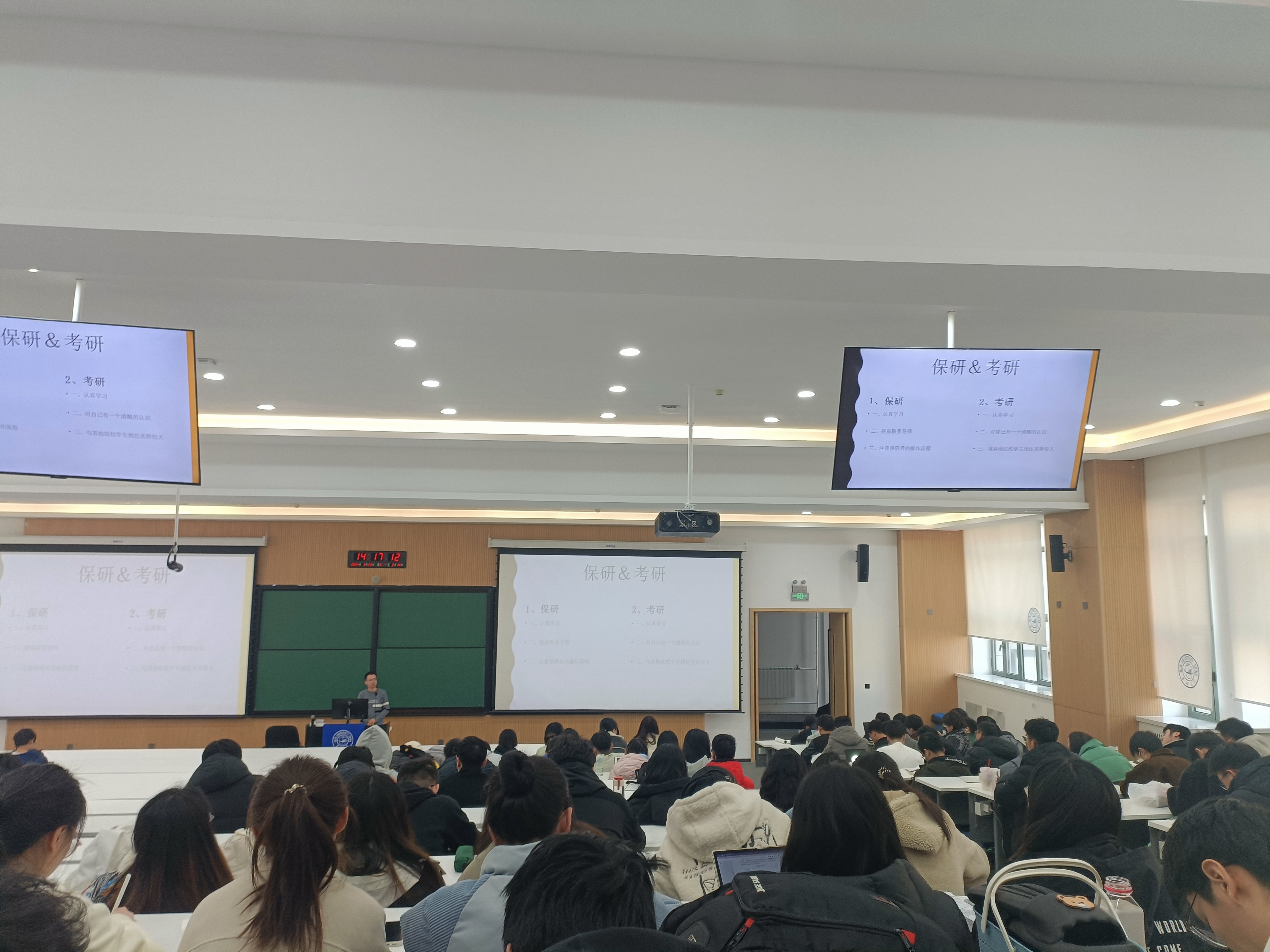 2021级本科生《大学生职业发展与就业指导》主题在逸夫楼A206召开。2021级、2023级辅导员严冬邀请了考研上岸研究生的学长学姐、研三已签约工作的学长学姐,为同学们介绍找工作细节及备考建议。