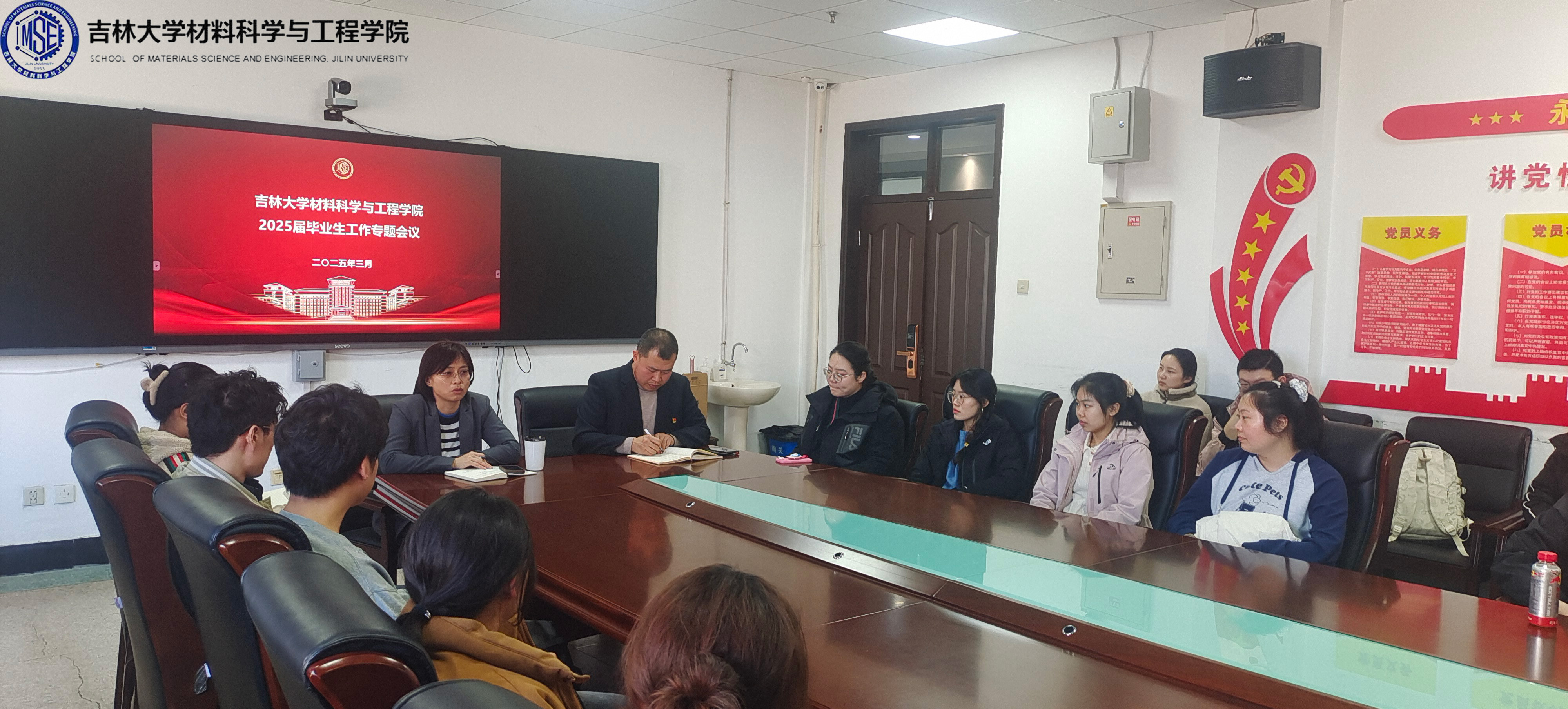 于2025年3月13日中午在南岭校区逸夫机械材料馆410会议室召开毕业生工作专题会议,学院党委副书记兼副院长华蕊老师、学院本科毕业班辅导员严冬老师,南岭校区2021级各行政班班长、团支书,以及2021级各教学班负责人参加了本次会议。